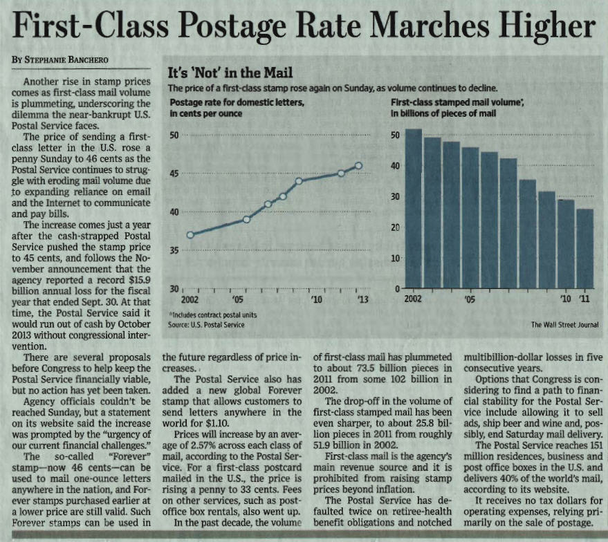 ‘All first-class stamps will soon be ‘Forever’ stamps*’ said the guy at the postal services store here on 15th Ave. Yes, but will stamps be forever? I suppose so. We haven’t gotten rid of paper money – or of paper in the office yet, have we? Congress is supposed to take up legislation this year to improve the dire straits the Postal Service finds itself in.