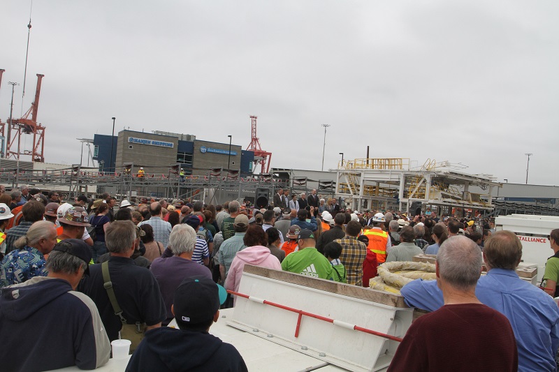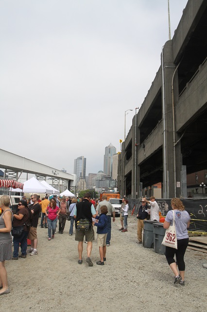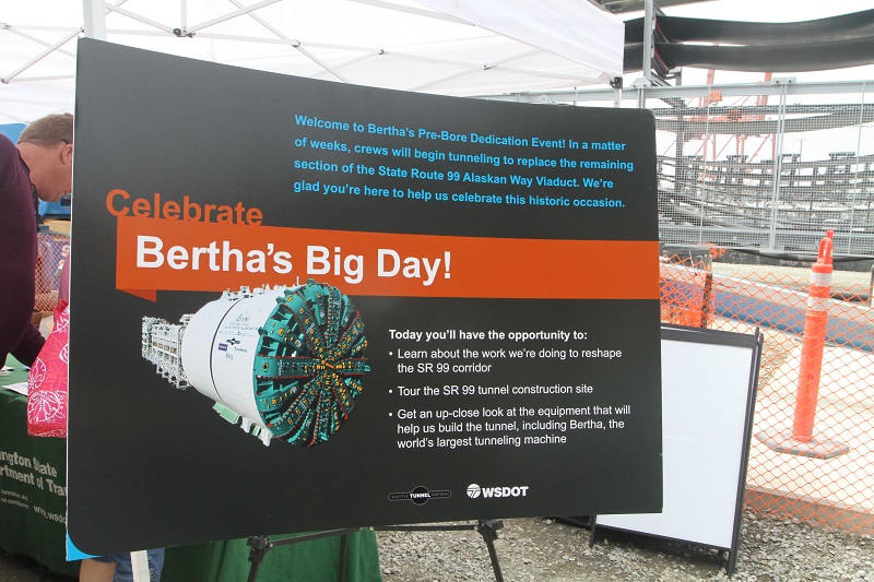 Big Bertha the tunnel borer is ready to start her duties here in Seattle, and there was a dedication ceremony today that Bryan and I attended. The borer is very big, the biggest in the world, and built in Osaka, Japan by Hitachi’s heavy construction division. Check out the excellent write-up by gizmodo that also shows in an animation how the digging, earth removal and tunnel construction works.