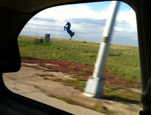 This picture is from Thursday’s taxi ride out to Denver airport. I looked up, and there it was : a cobalt blue horse out on the plains – so out of place it looks like an alien creature. Turns out it has been there for five years already, and despite criticism is likely to stay, as NBC’s Today website reported here.