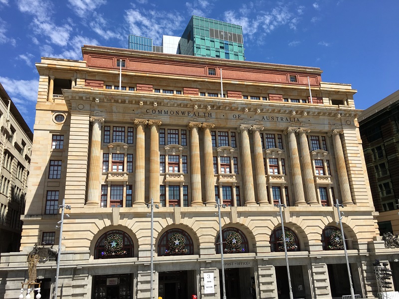My brother and I made a jaunt into downtown Perth with the Transperth* train on Wednesday. Downtown is a mix of old and new buildings, with the tallest ones belonging to the giant multinational mining companies such as Rio Tinto Group and BHP Billiton. (Iron ore is the country’s largest export earner, and lost 43 per cent in market price this year as low-cost miners such as Rio Tinto and BHP Billiton pressed ahead with production to defend their market share).