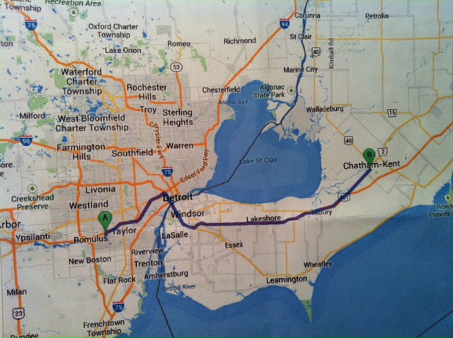 It was quite a journey from Denver to Detroit and into Canada. I got into Detroit at 10.00 pm, and had to navigate to the city and the Ambassador Bridge into Canada and on to the little town of Chatham where I’m meeting my USA colleagues and PwC Canada colleagues tomorrow. I pulled up at the Holiday Inn Express at exactly midnight local time in my rented white Chevy Impala.