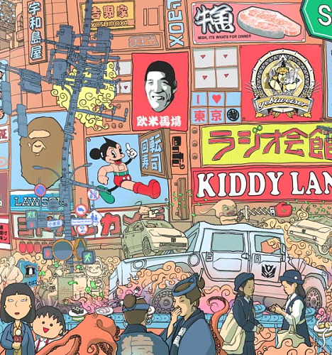 On Saturday I took the street car down to Seattle’s Japan Town (it really occupies just a few city blocks, adjacent to the much larger Chinatown). I ended up buying this 2008 poster called ‘Nihontown’. It is from a local artist called Ken ‘Enfu’ Taya, and here is a full explanation of the mash-ups of American and Japanese icons that had been crammed into the poster, from his website.