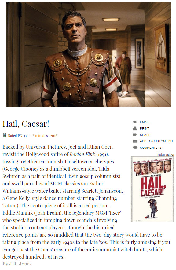 We watched Hail, Caesar! (2016) last night, a Coen brothers movie – and a movie I suspect, that is liked better by film buffs and critics, than the average movie-goer. For me the highlights were : the ‘water ballet’ performed by the Aqualilies, the sailors’ dance number featuring Channing Tatum, and the Russian submarine scene. And : I know I should not romanticize war, but I love the Echelon Song that played out the movie as the credits rolled, sung by the Red Army Choir (also known as the Battle of the Red Guards, written in 1933).