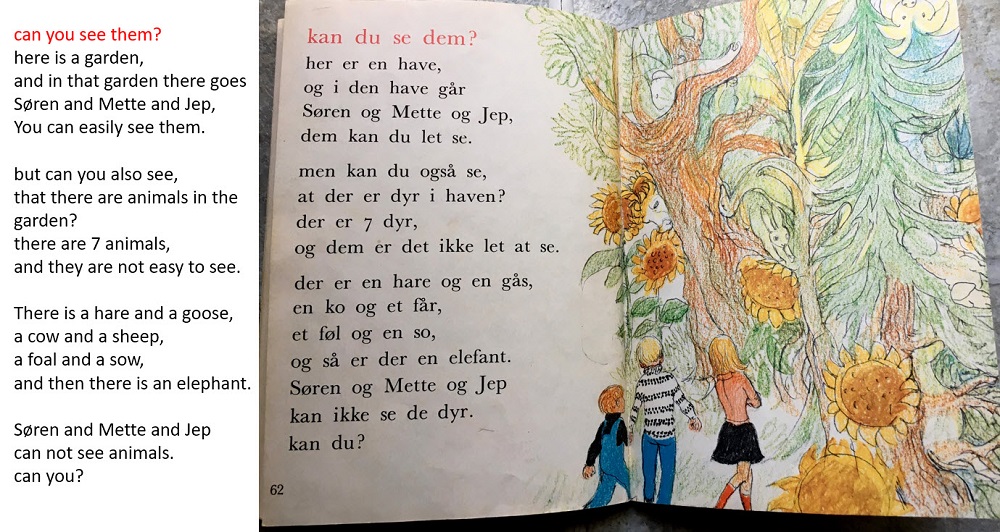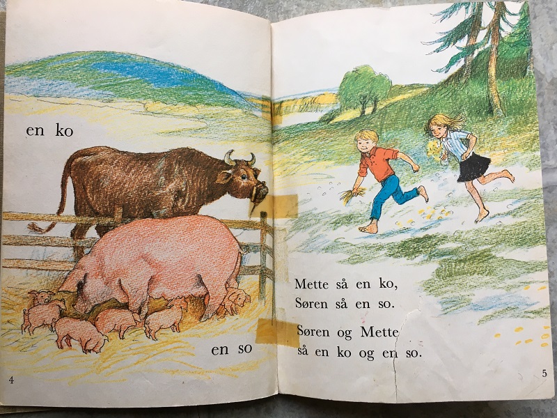 .. no, not a pastry that you can eat – the kind you can read. I got this little first-grade reader book at a second-hand bookstore for a few dollars. For now, I don’t intend to learn Danish. I just like the o with the streg (ø) and the a with the overring (å). So foreign.