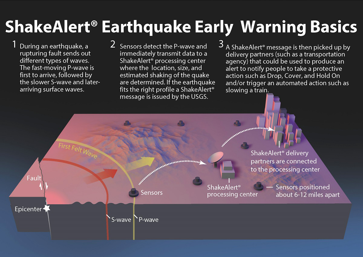 We’re soon getting a smartphone ‘shake alert’ system that will produce as much as a 30-sec. heads-up, that earthquake tremors are on the way (see diagram below). Thirty seconds or less — so this is not the time to panic and freeze.