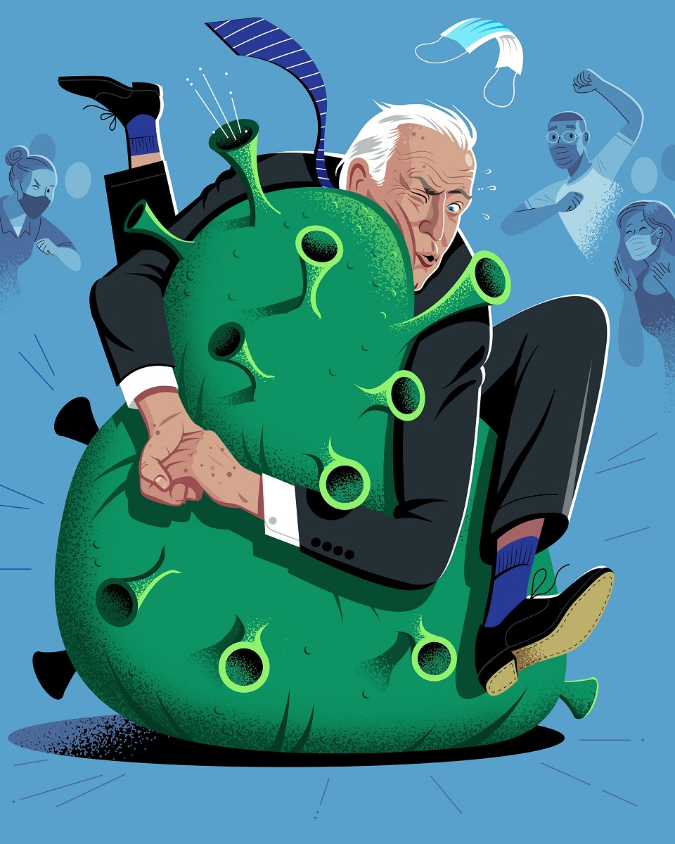 The president noted that 220 million vaccine shots had been given since he had taken office, and talked about his $2 trillion infrastructure plan.
