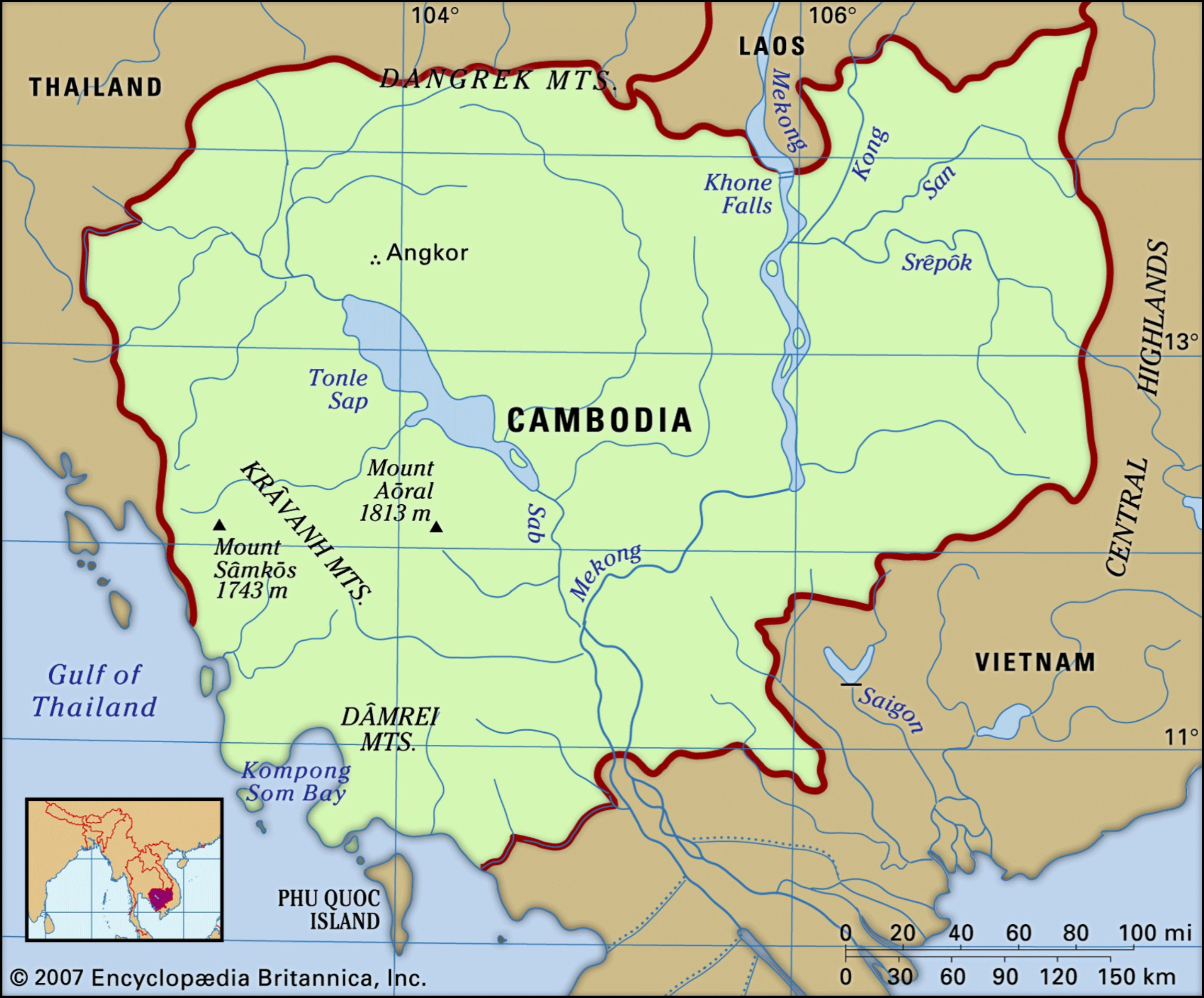 Tourist-wise (‘Quick Facts’ from Google Maps): Cambodia has a landscape that spans low-lying plains, the Mekong Delta, mountains and Gulf of Thailand coastline. Phnom Penh, its capital, is home to the art deco Central Market, glittering Royal Palace and the National Museum’s historical and archaeological exhibits. In the country’s northwest are the ruins of Angkor Wat, a massive stone temple complex built during the Khmer Empire.
