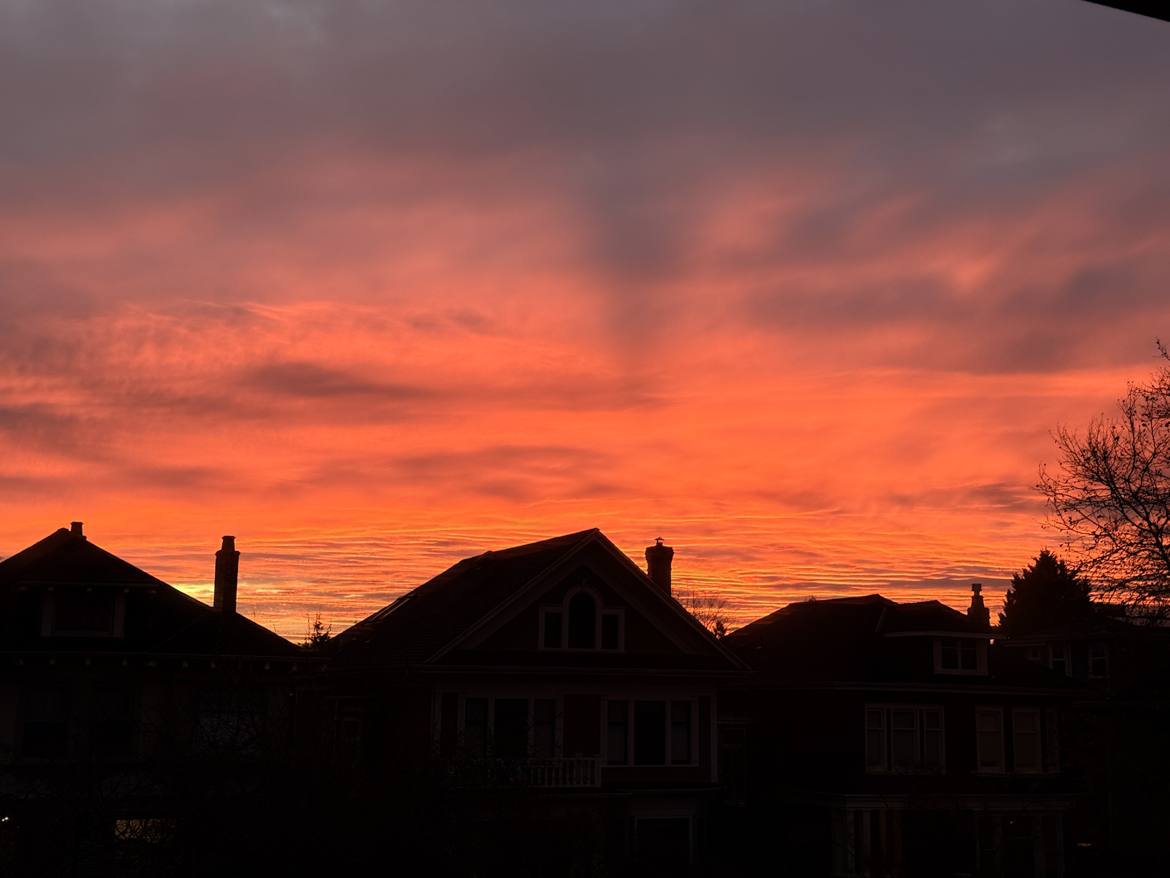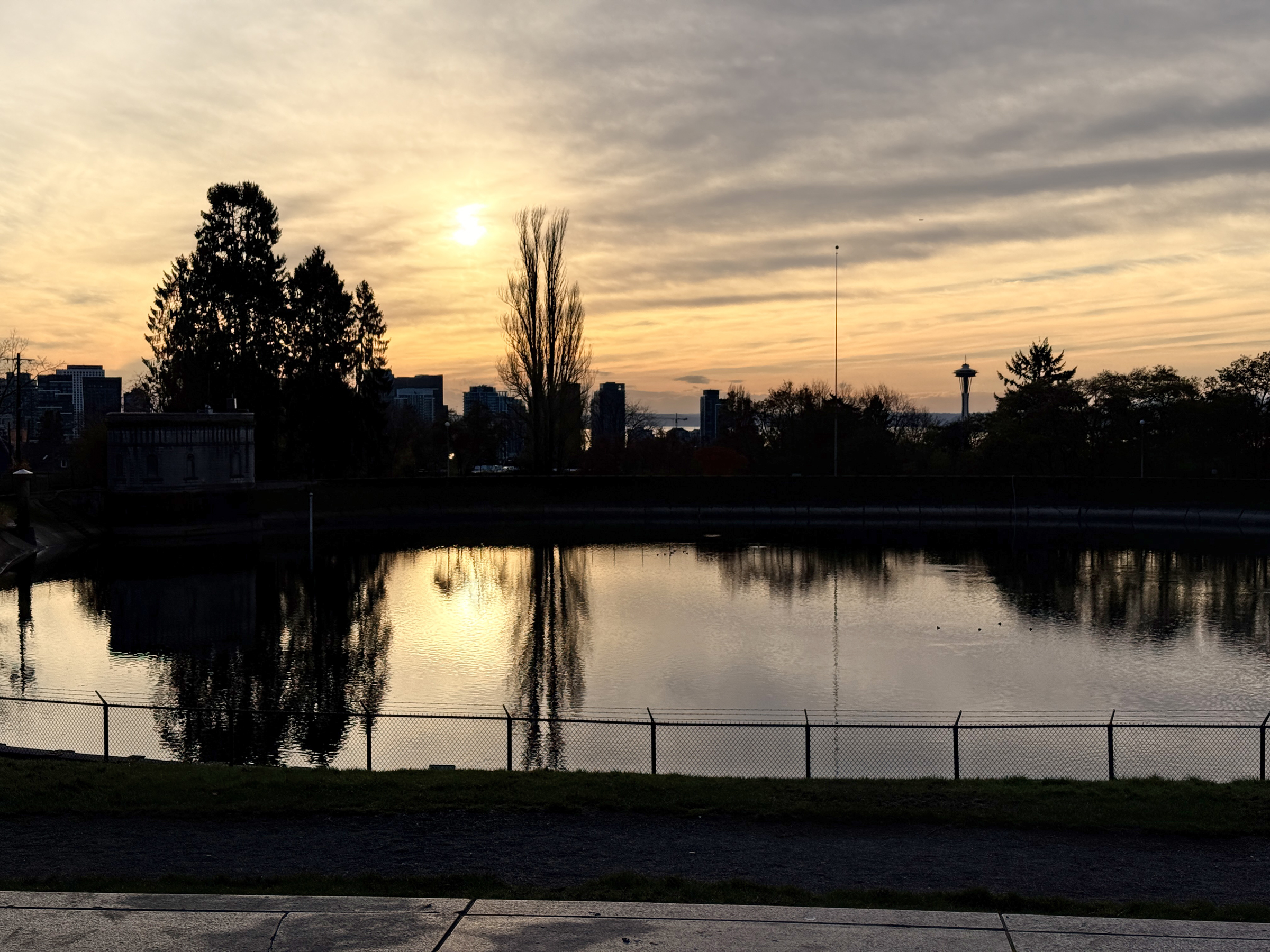 There was light rain on and off all weekend here in the city, and a little fog in the Seattle’s low-lying areas this morning. Some trees still have leaves on, but a lot have now shed it all.