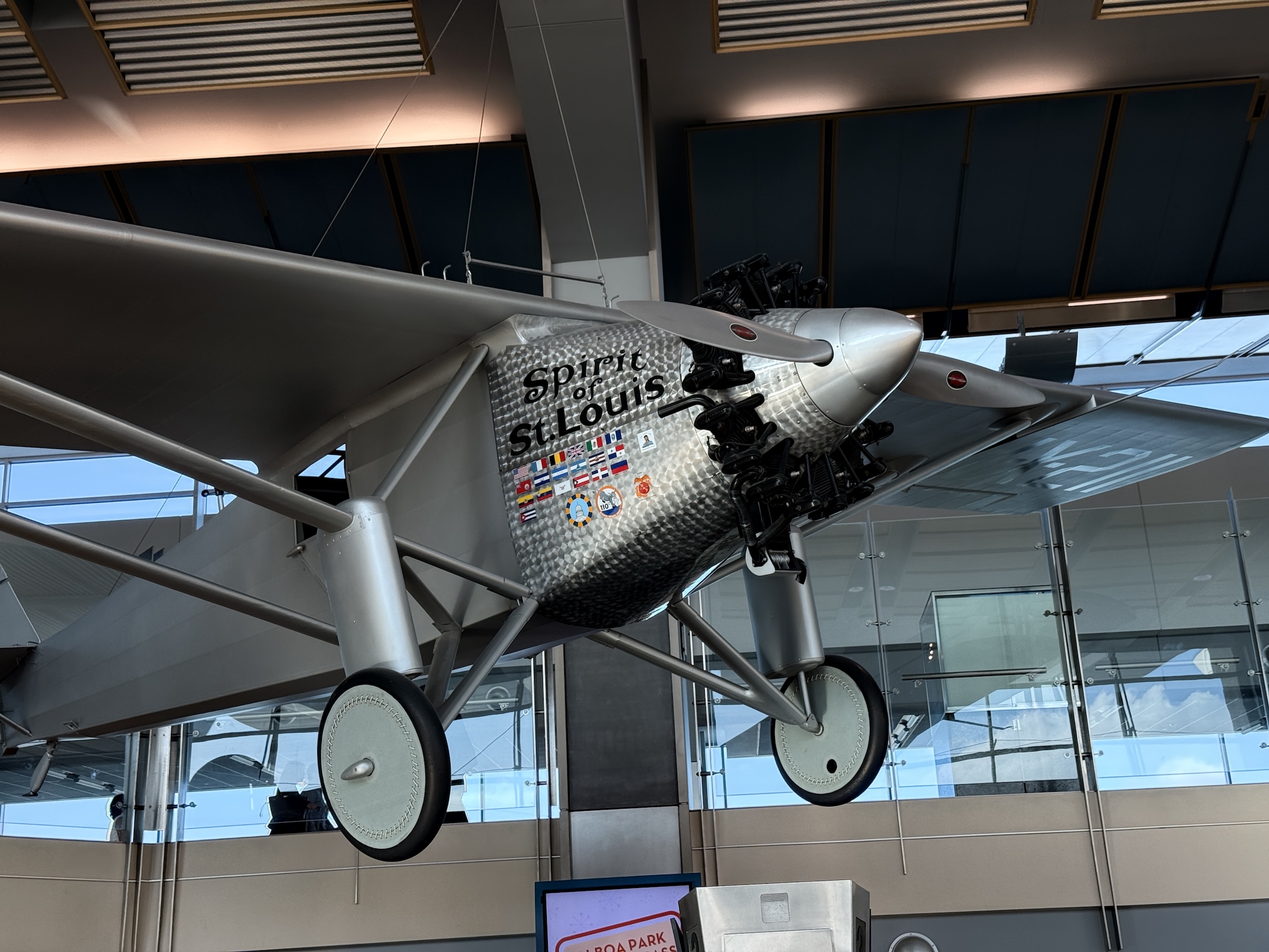 The Spirit of St Louis airplane is still in the baggage claim hall in San Diego airport’s Terminal 2.