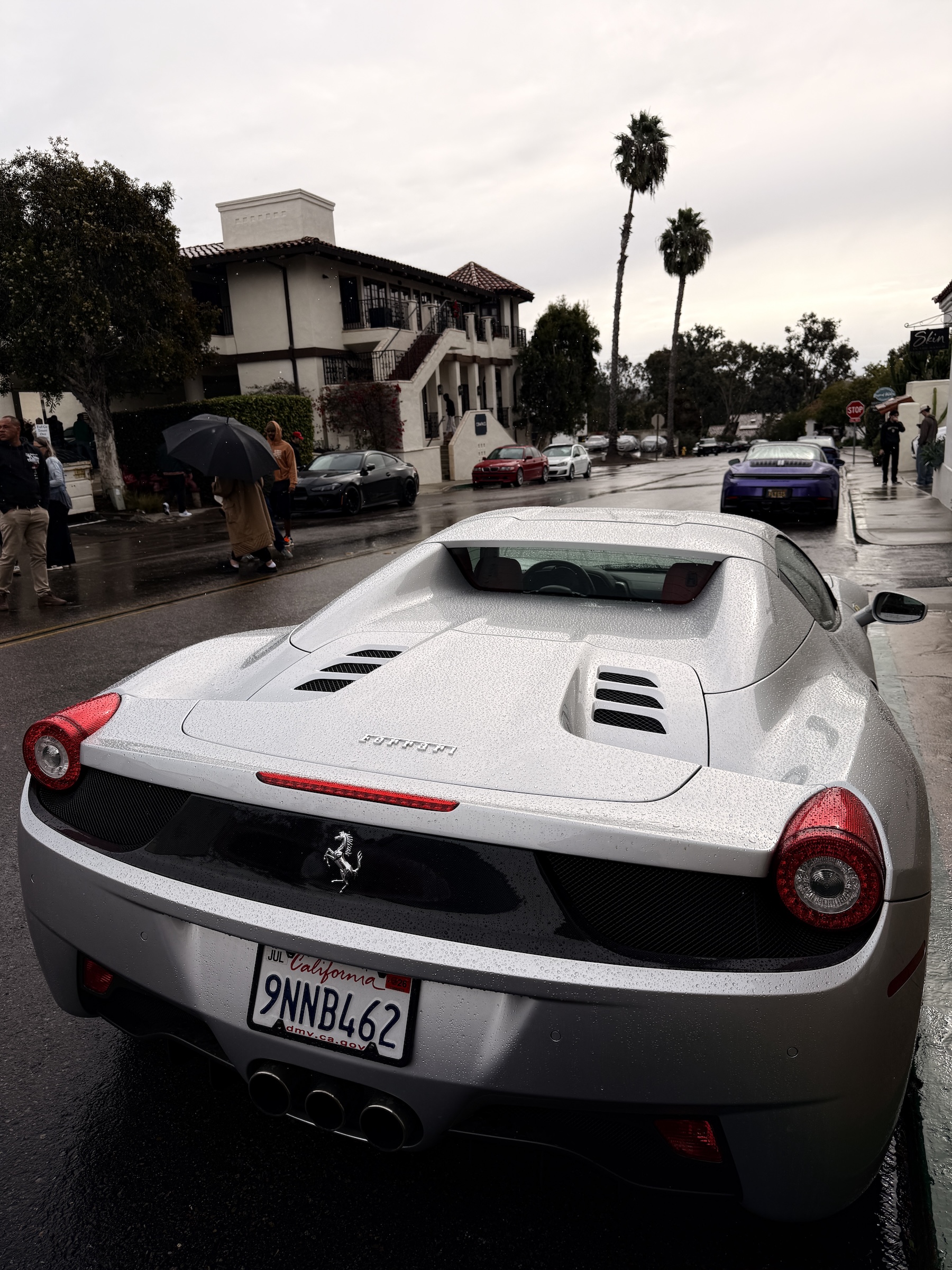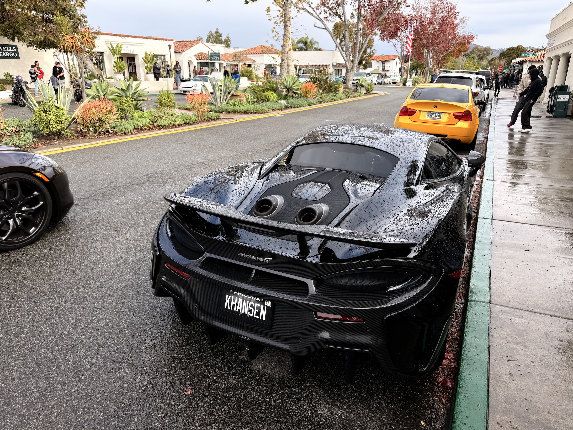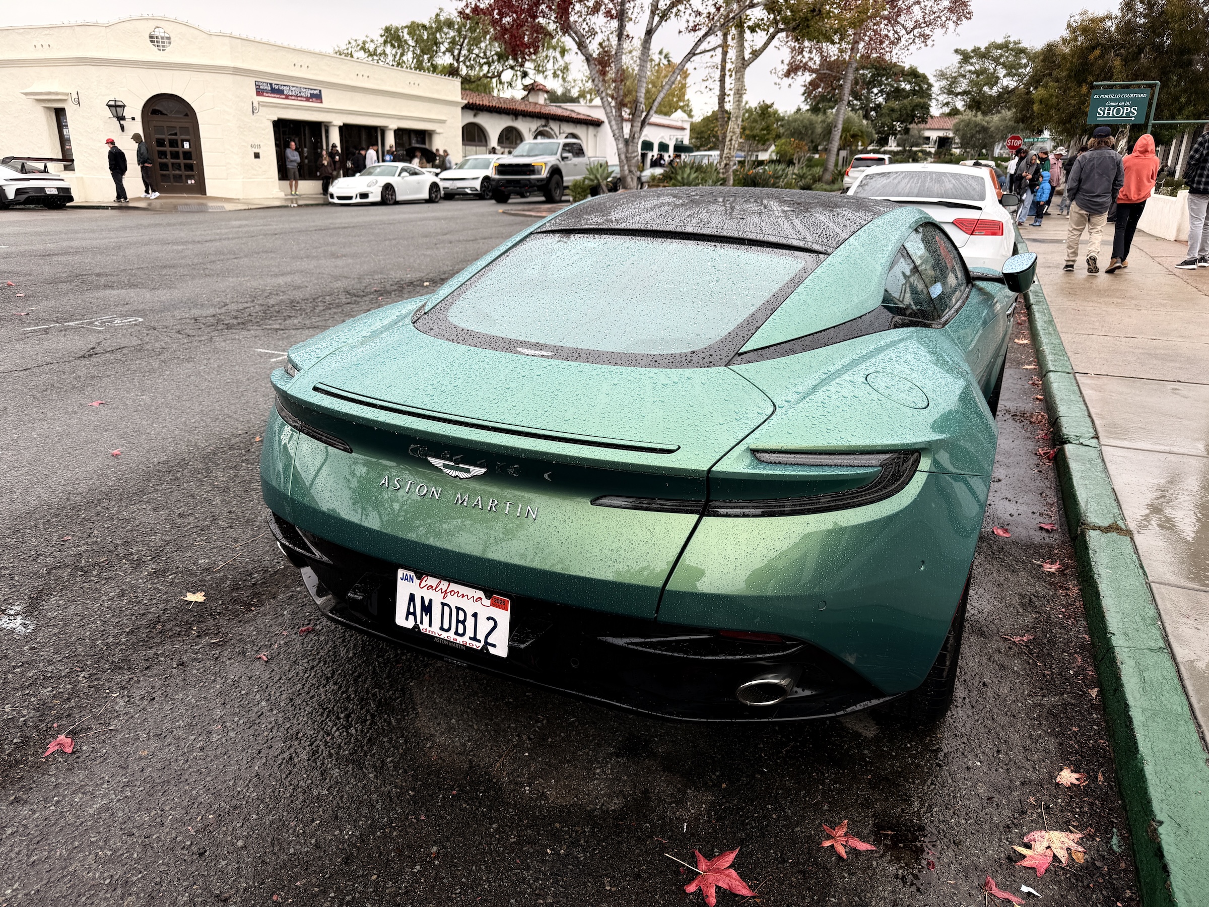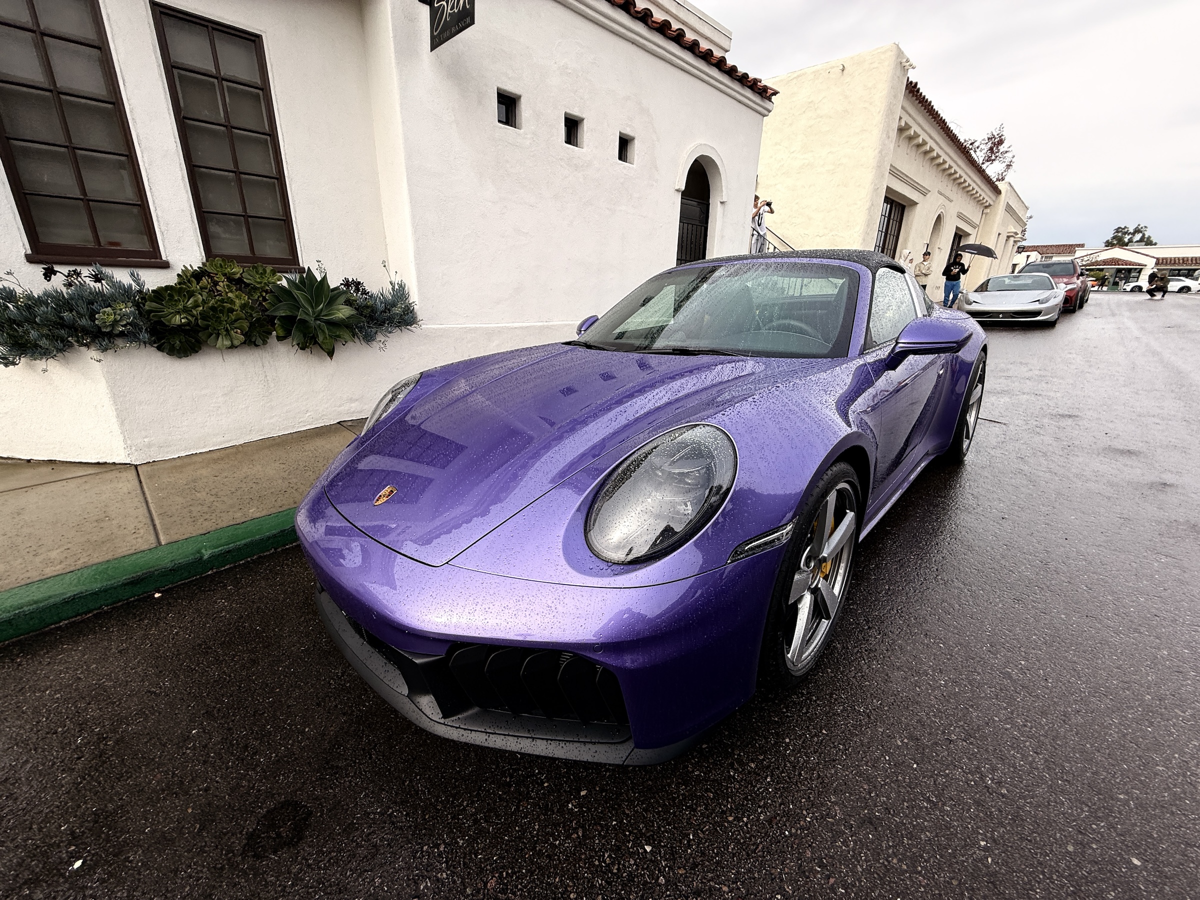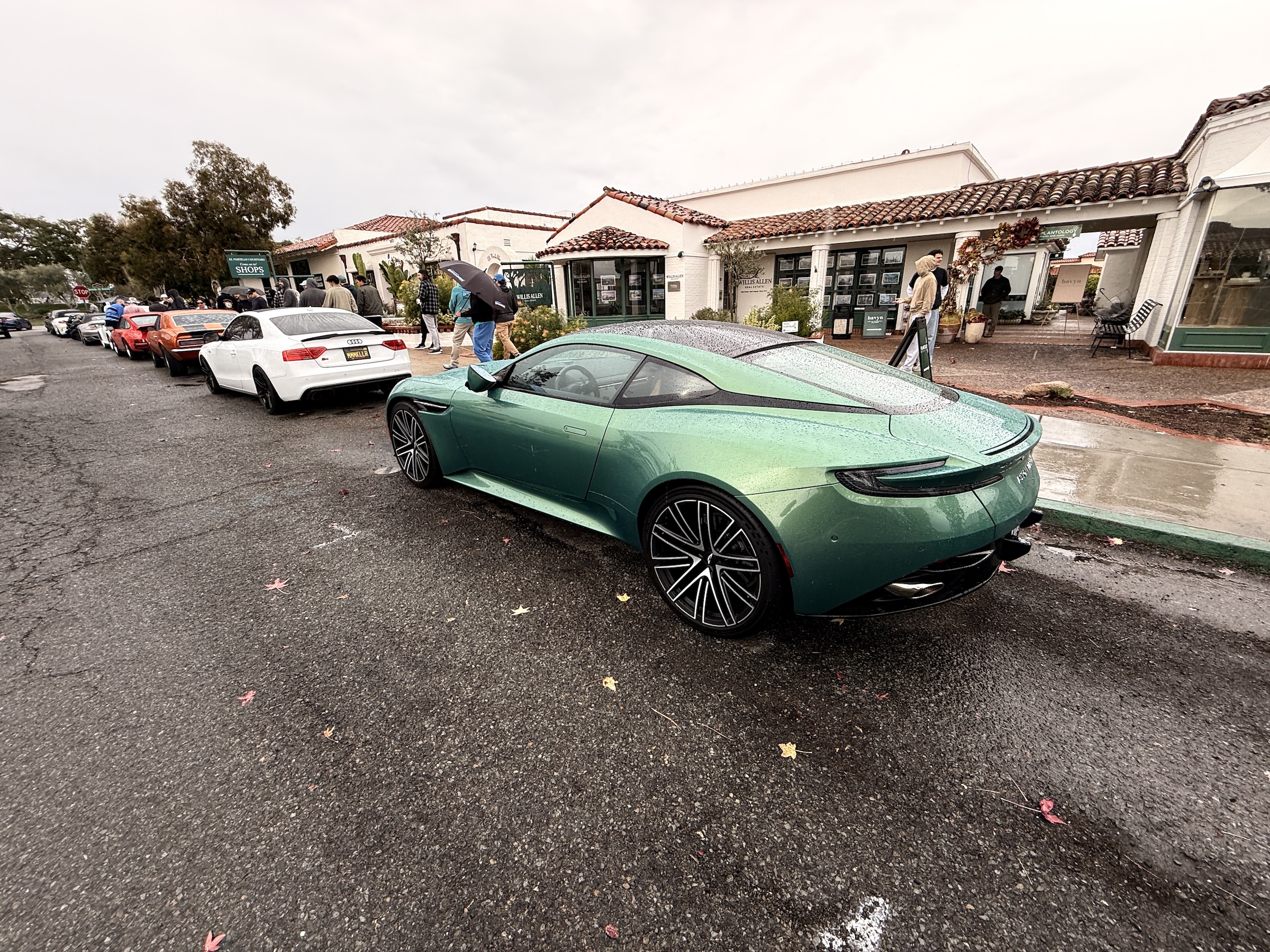 It was raining this morning, and we drove out to see the supercars and other classic cars that are parked in downtown Rancho Santa Fe on Paseo Delicias and Avenida de Acacias.