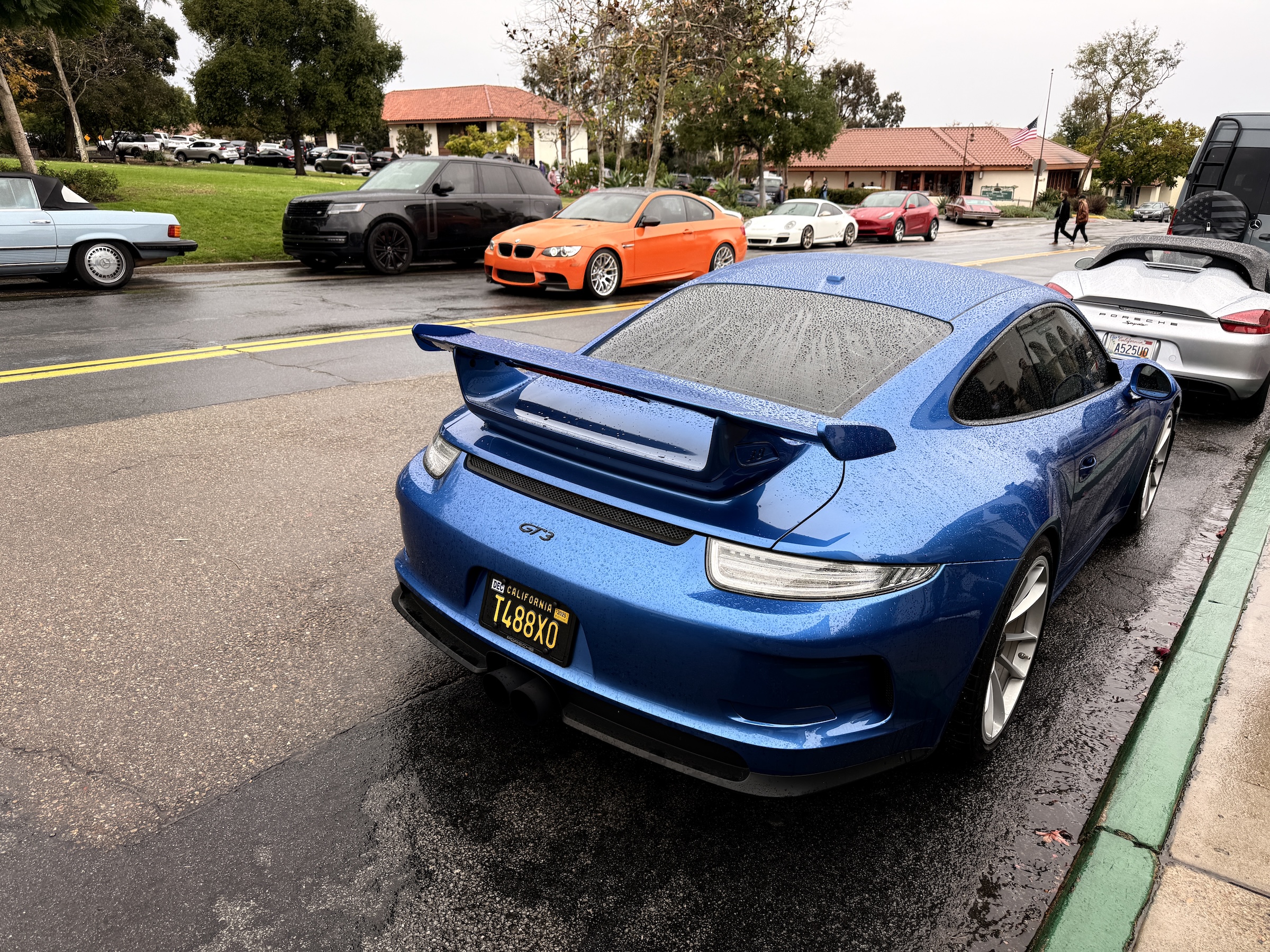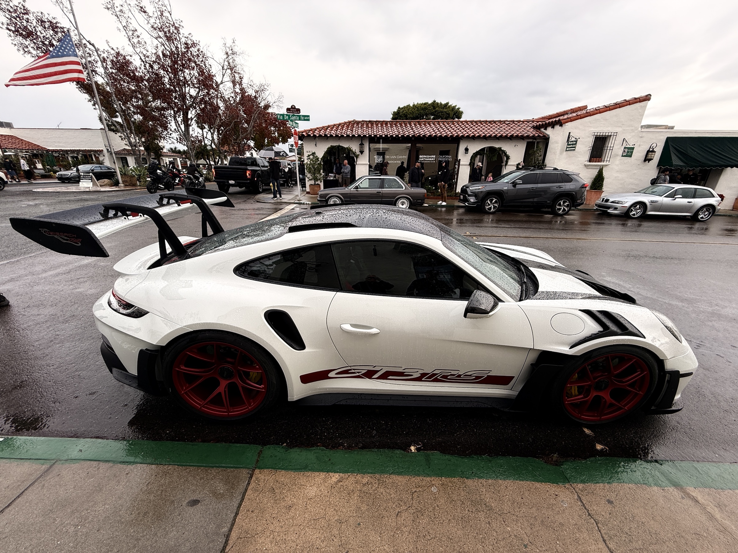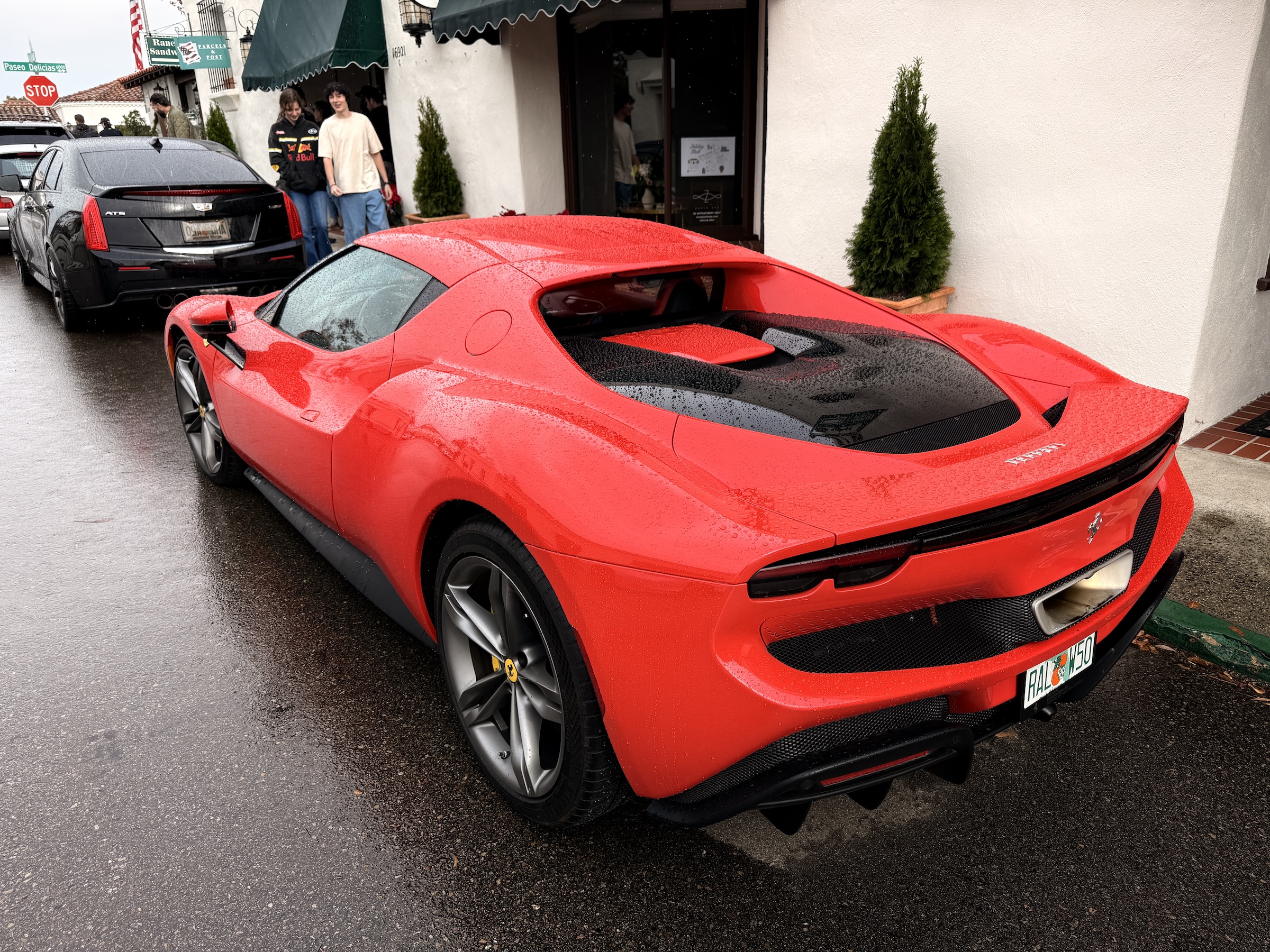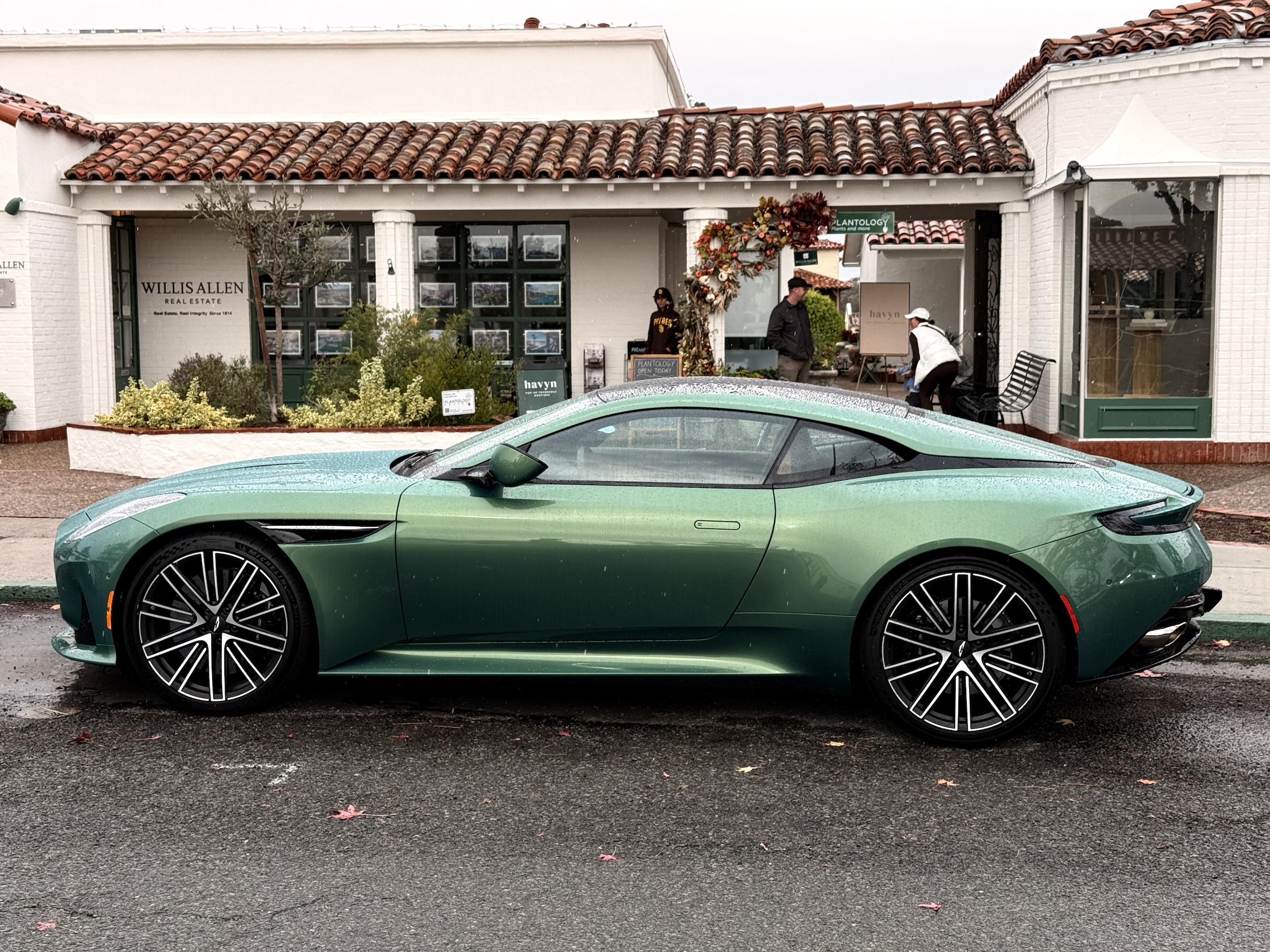 It was raining this morning, and we drove out to see the supercars and other classic cars that are parked in downtown Rancho Santa Fe on Paseo Delicias and Avenida de Acacias.