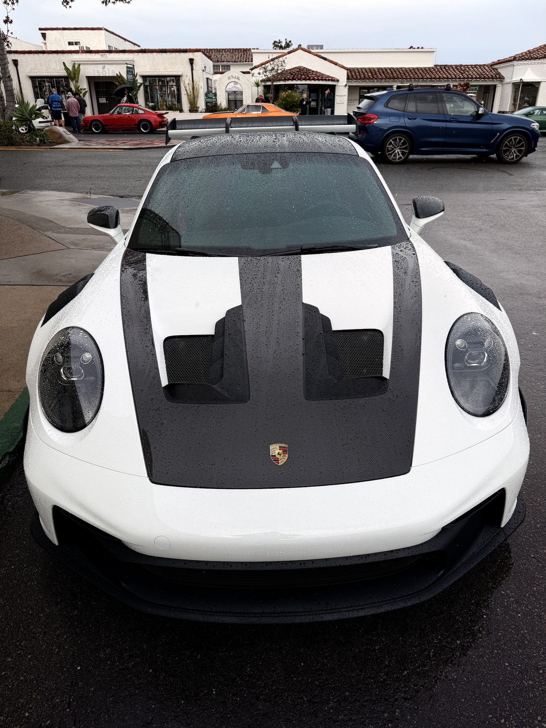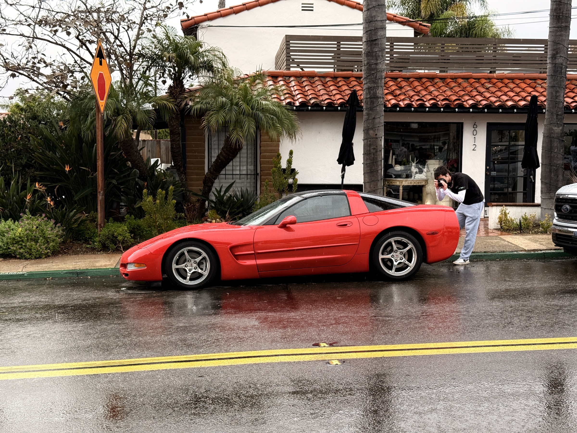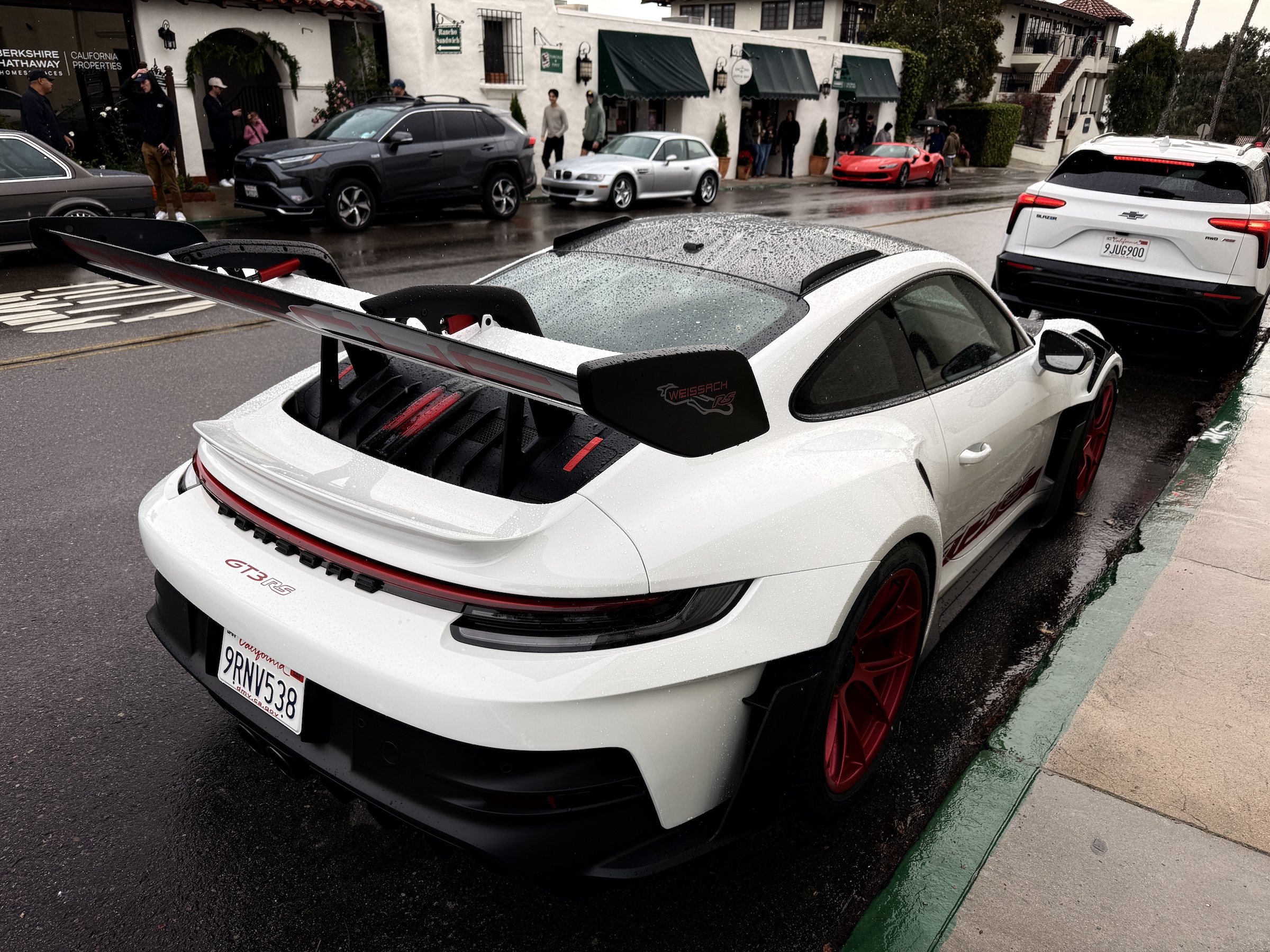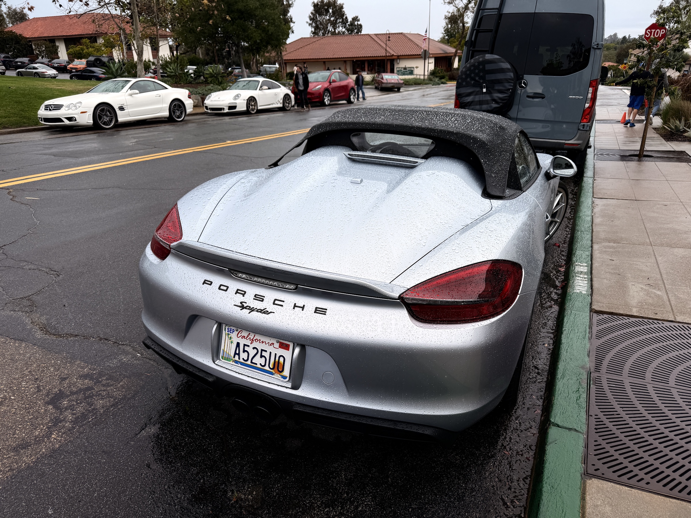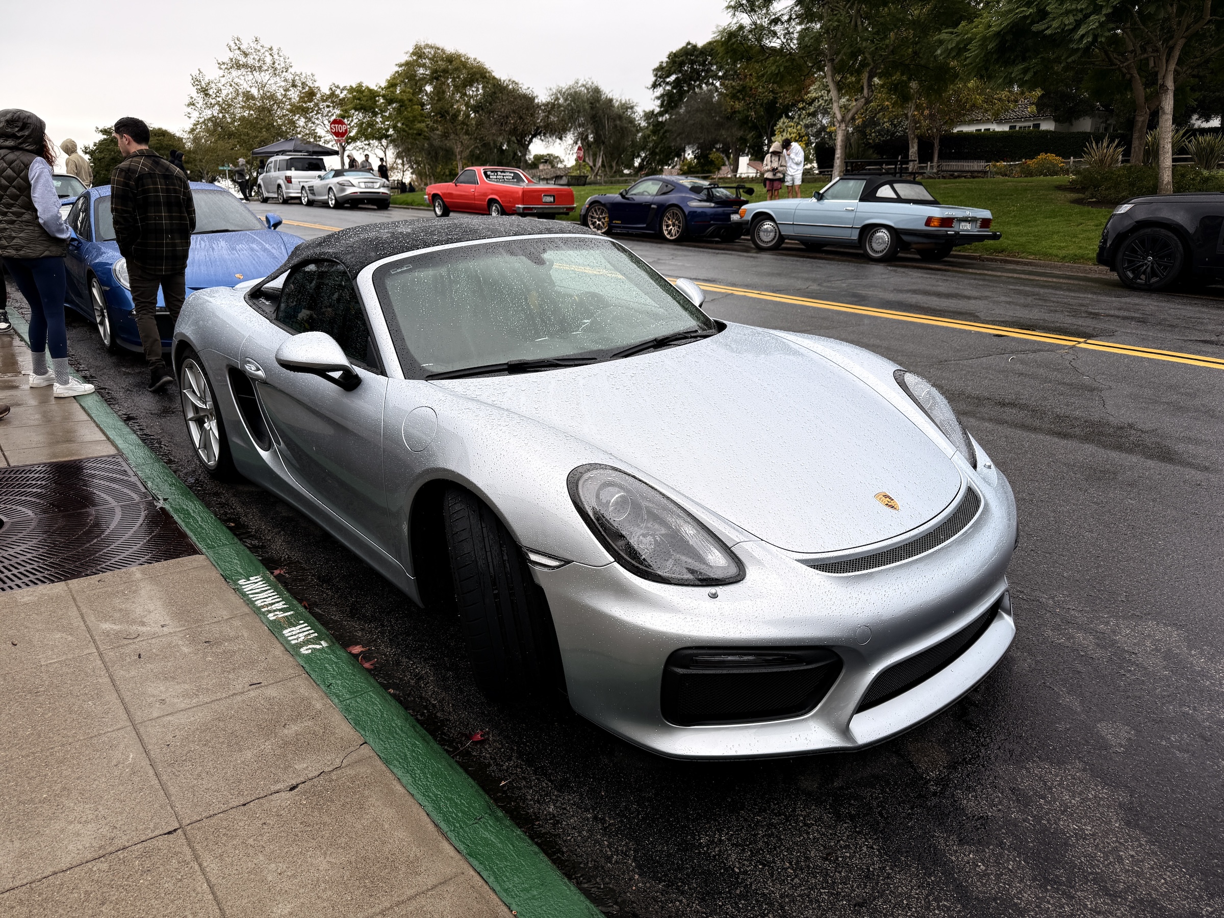 It was raining this morning, and we drove out to see the supercars and other classic cars that are parked in downtown Rancho Santa Fe on Paseo Delicias and Avenida de Acacias.