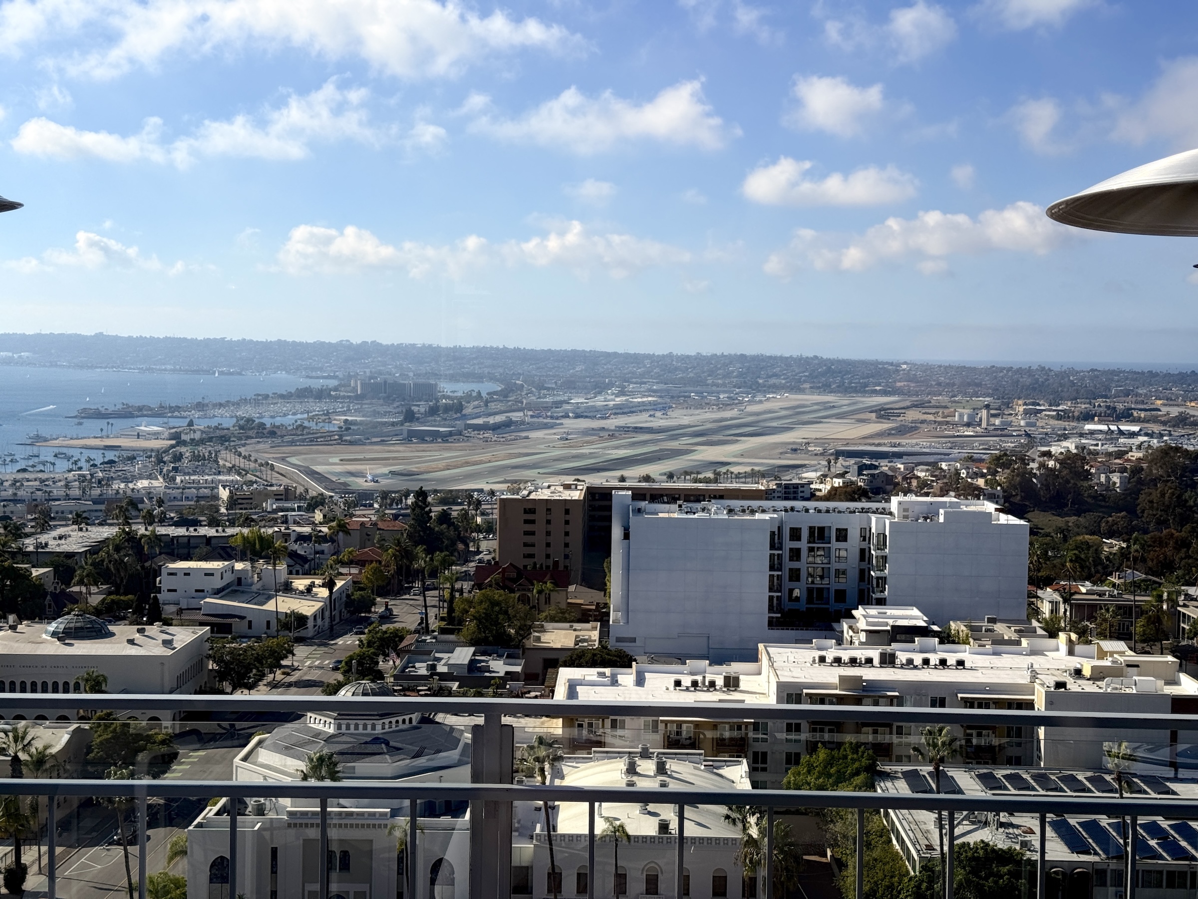 Three of us had a lovely lunch at Mister A’s restaurant in downtown San Diego. The restaurant is on the 12th floor of the Manchester Financial Building and offers great views of downtown, the Coronado Bridge and even the runways at San Diego International airport.