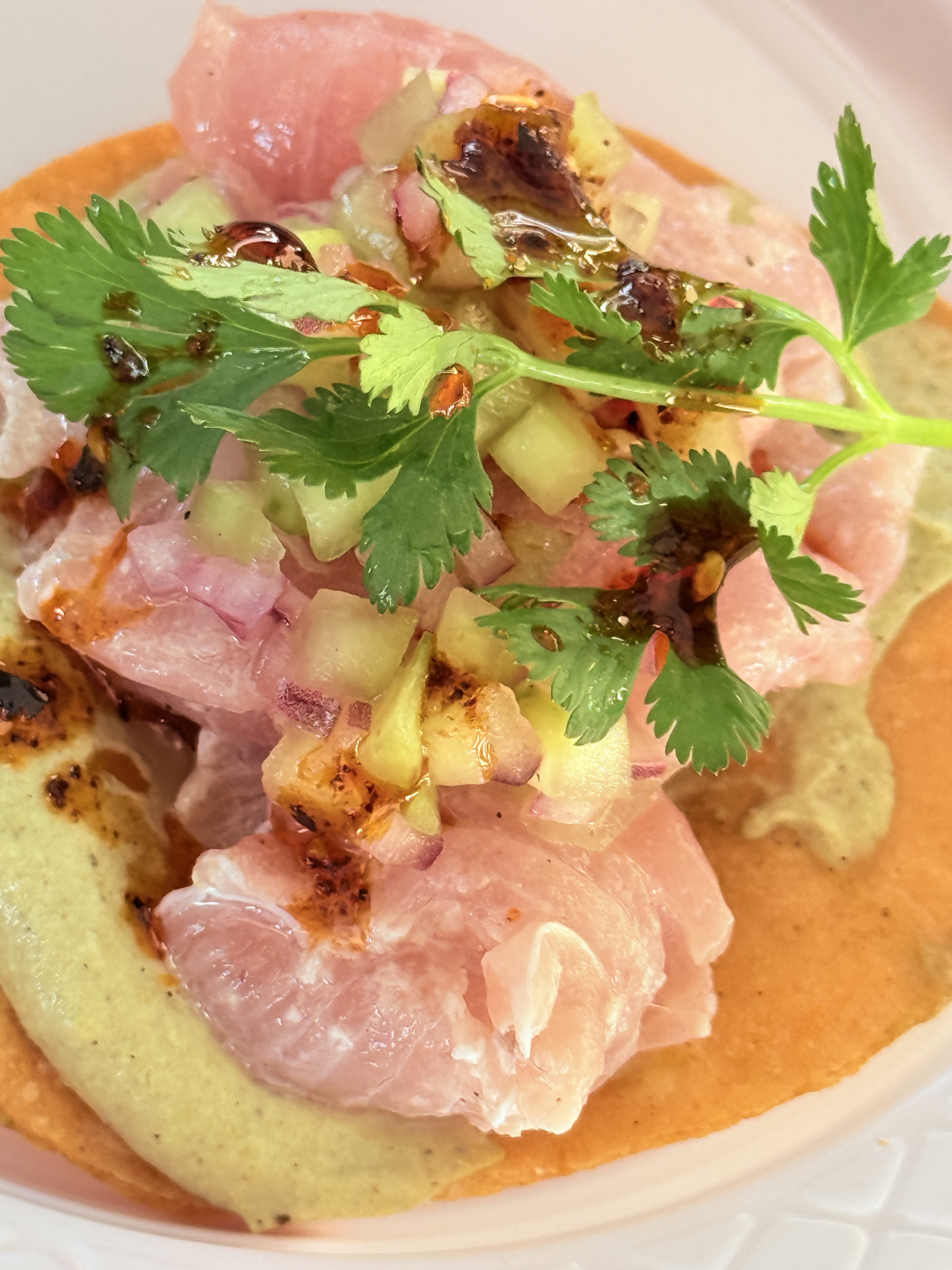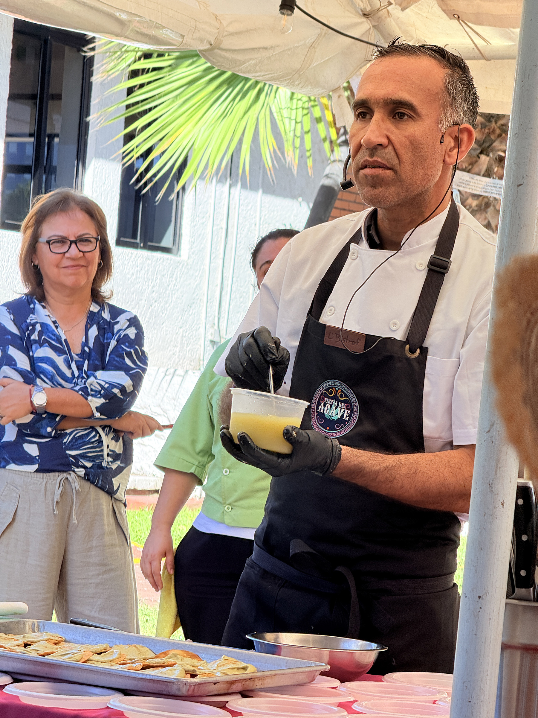 We sat in on chef Hector Saracho’s food prep demonstration. He prepared a ceviche from Sierra Spanish mackerel, served up on a made-from-scratch toasted tortilla shell. (Chef Saracho has impressive credentials. He travels to Cabo San Lucas and elsewhere to cook for the likes of Jennifer Aniston, George Clooney and Howard Stern.)