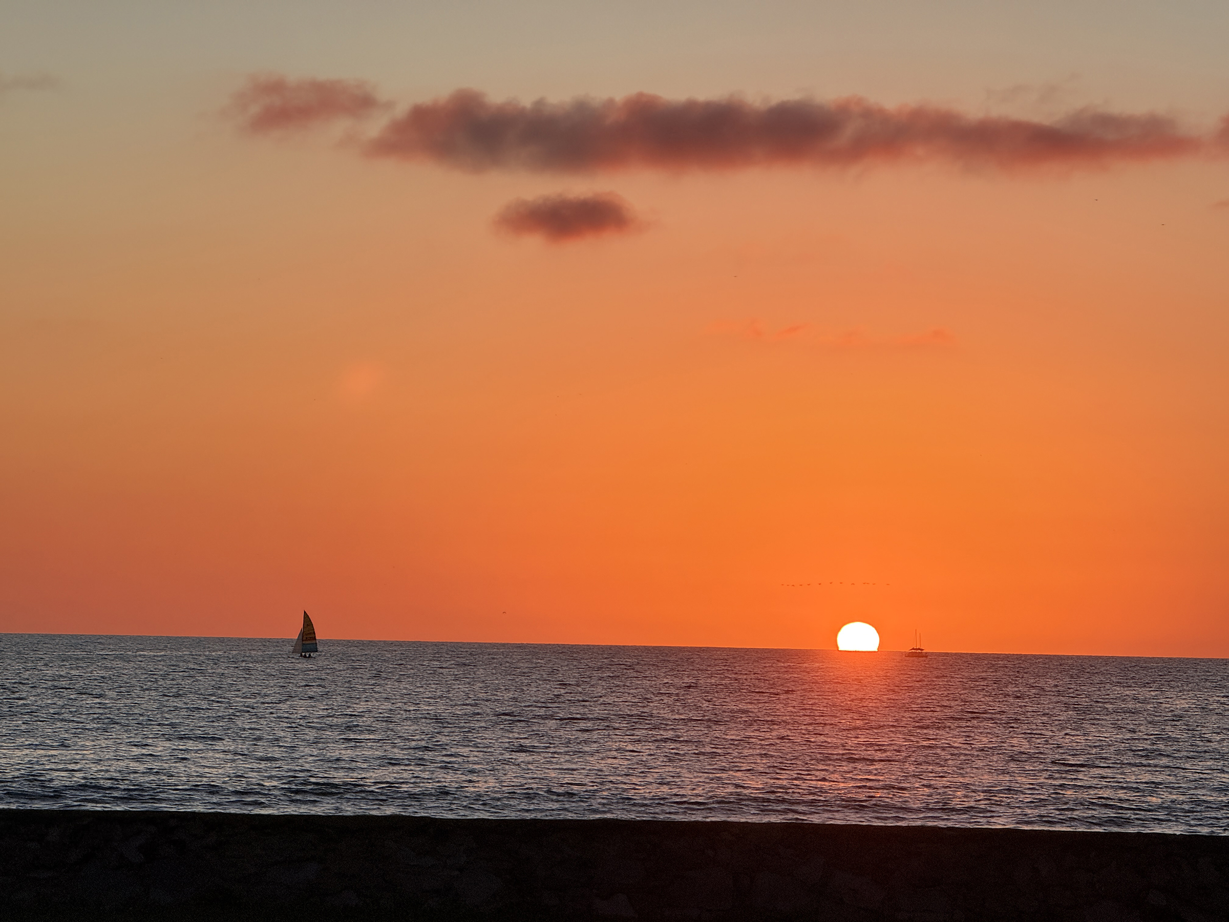 Sunset over the Pacific Ocean tonight, seen from the beach by Centro Histórico, or Old Mazatlán.