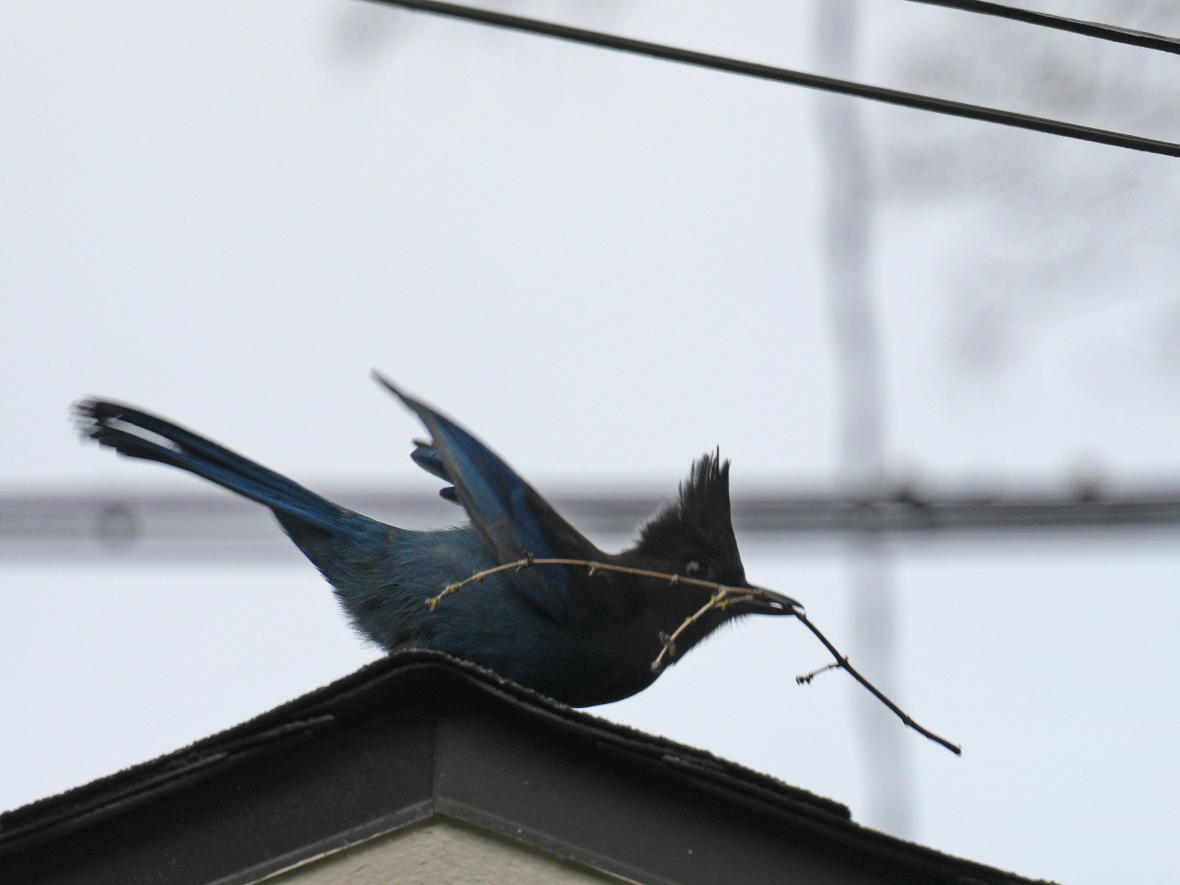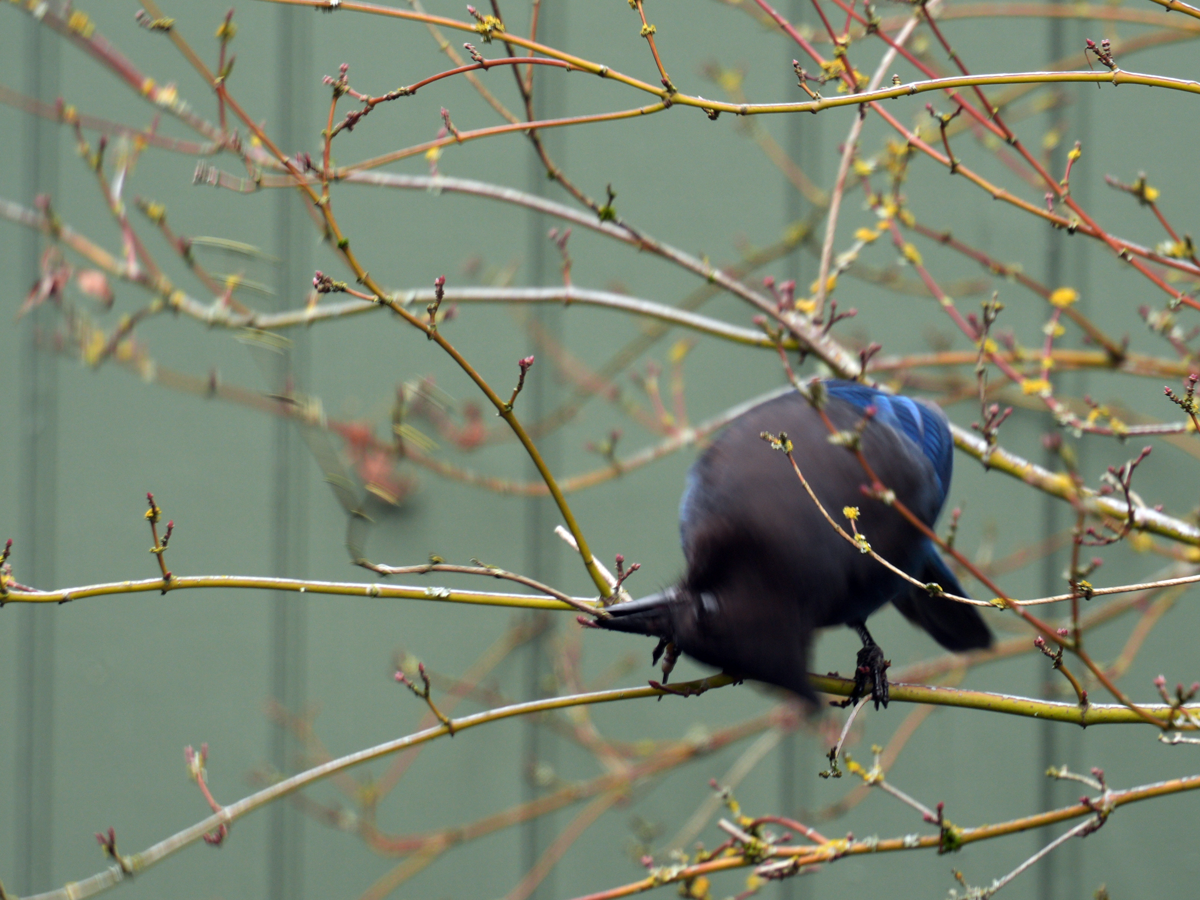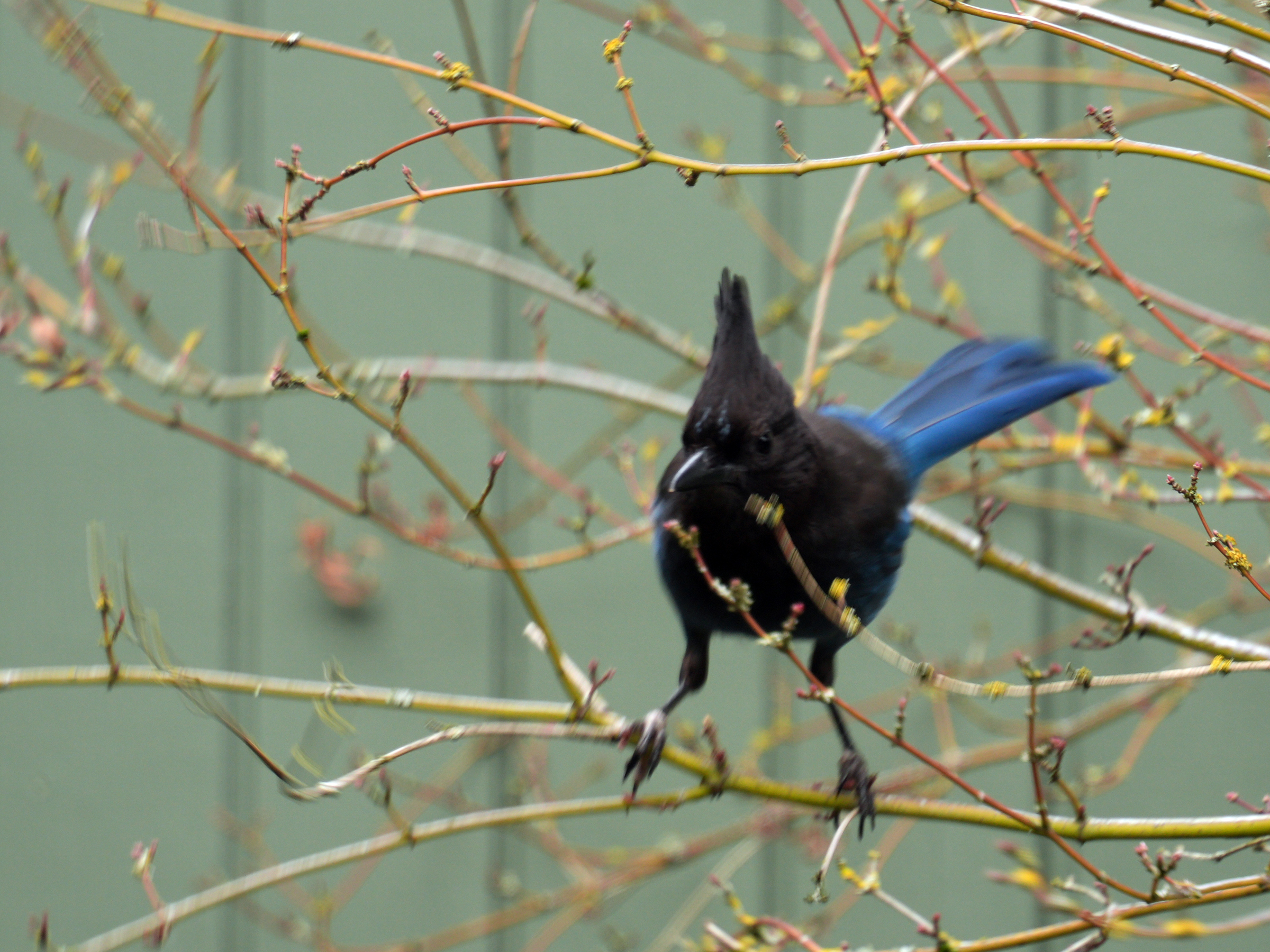 Mr Blue Jay* was at it this morning, stealing twigs from my Japanese maple for his nest.