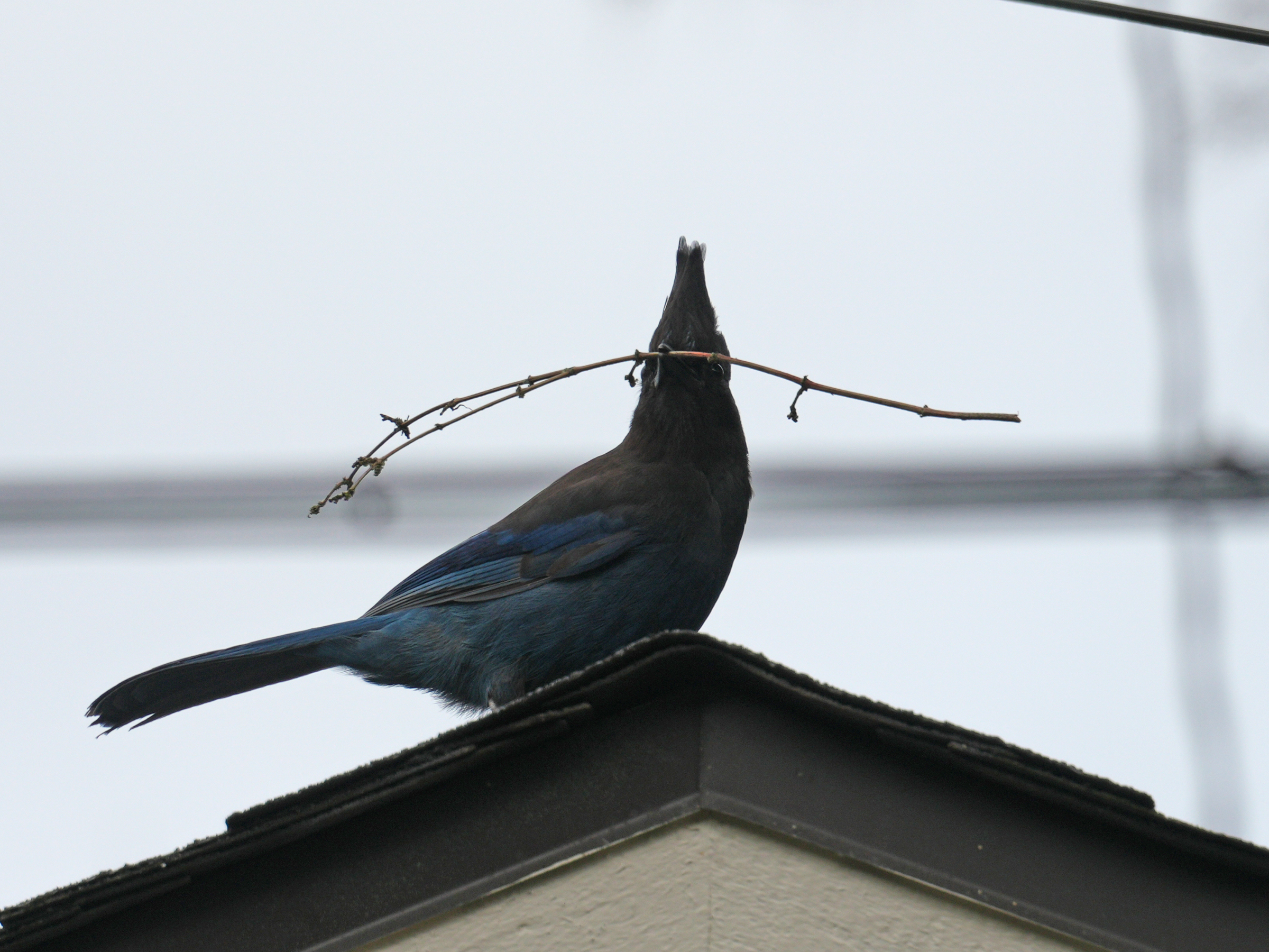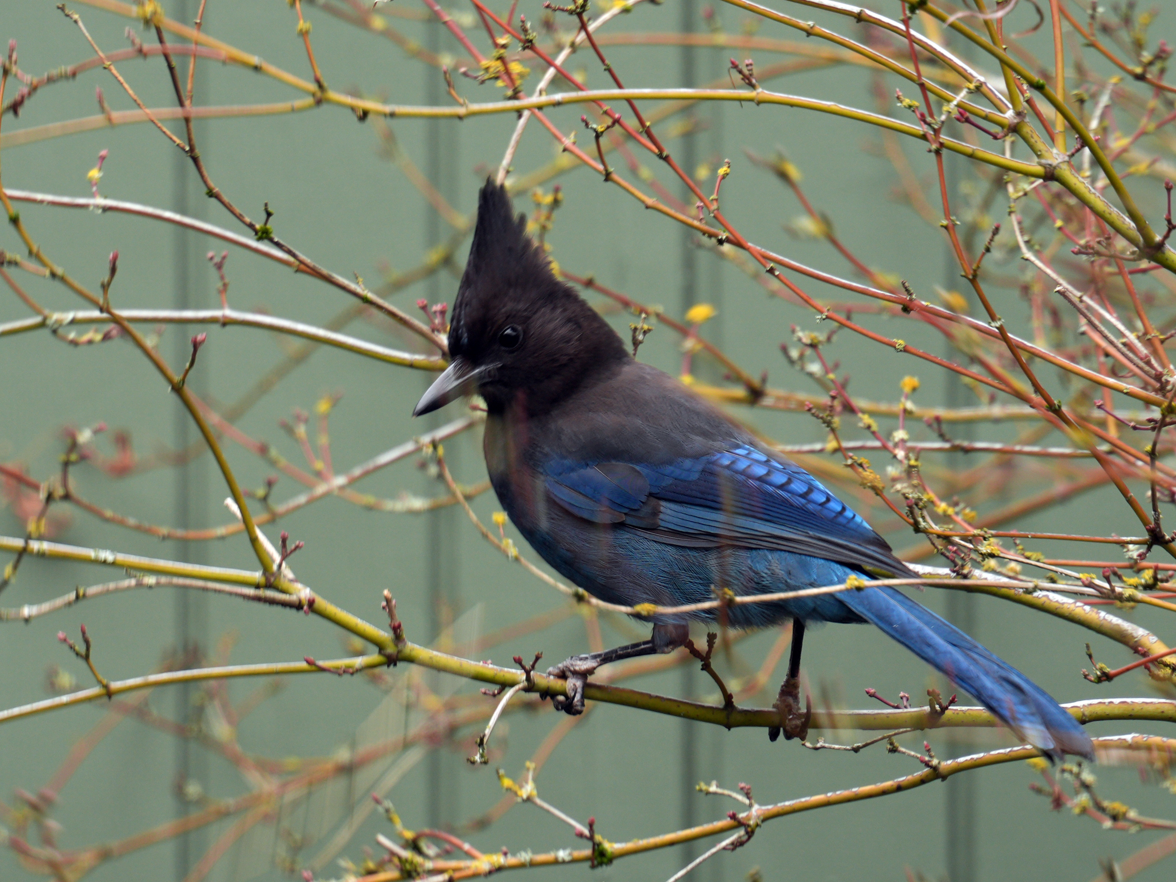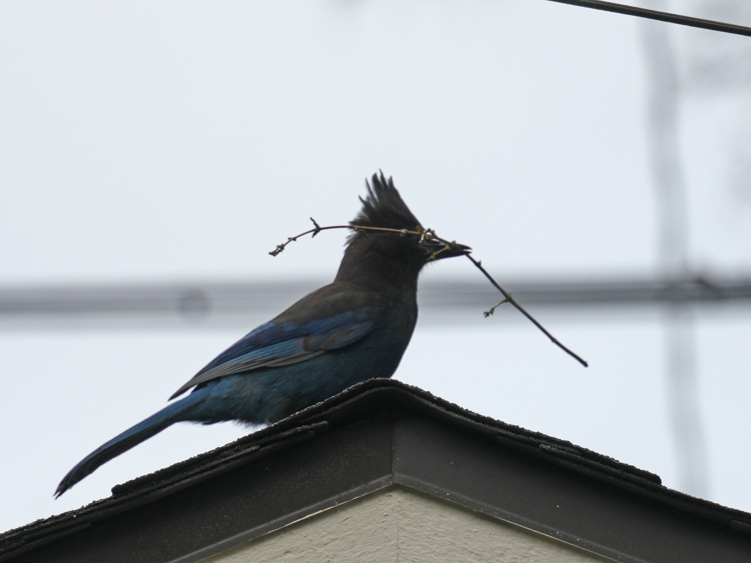 Mr Blue Jay* was at it this morning, stealing twigs from my Japanese maple for his nest.