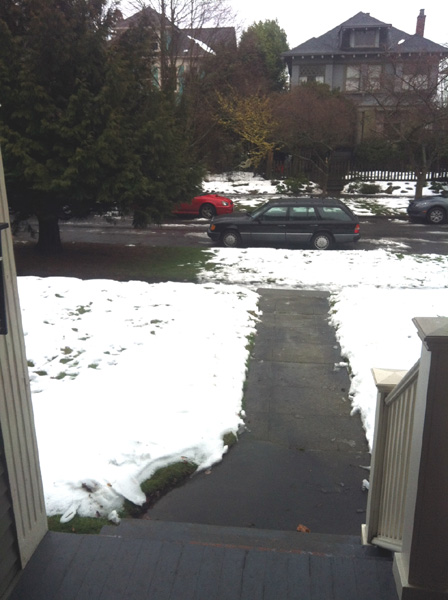 Snow on the ground in Seattle (the view from my front door)