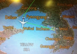I’m in the hotel in Dameisha. It is very late here so I will upload more pictures from the flights out here tomorrow. This one shows us approaching Seoul for the stop-over before continuing to Hong Kong. Looks like the pilot is giving Pyeongyang in North Korea a wide berth !