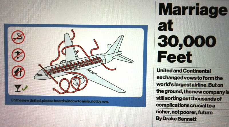 Bloomberg Businessweek gives a very interesting update about the merger between United and Continental Airlines in their latest issue. The picture is from my iPad .. I’m still getting used to reading my magazines this way!