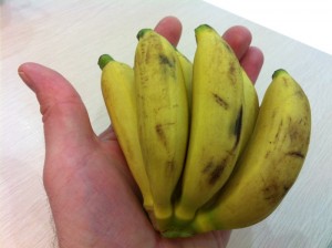 Posted on February 9, 2012August 22, 2017 by WillemWedensday/ lady finger bananas I got these ‘lady finger’ bananas from a colleague. She got them from a seller at a gas station a few hours away. The little bananas are sweet, and are grown in Australia as well.
