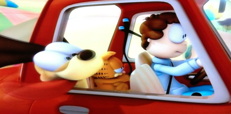 I only know Garfield* the cat from newspaper cartoon strips even though I’m sure there is a lot to be seen of him on the Cartoon Network in the USA. Here on the hotel’s TV channel he speaks Mandarin, but his antics are easy to follow. He is his old self with regards to laziness and eating obsessively! The name of the pooch is Odie. That’s him with ears and tongue flapping while leaning out the car window.