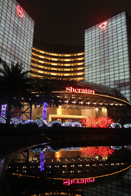 On Wednesday night we had a beer and a burger/ a British fish-and-chips at the Sheraton Dameisha to bid a colleague good-bye that is leaving the project. (The project is nearing its completion for all of us anyway). The LED decorations are still in place outside the hotel, and add some cheer to the winter nights. The Water Sky Hotel across the street has a new white sign. Very nice, but I miss the old yellow neon tube one that it used to have. At least the warm red one for the Meisha hotel close by, is still in place!