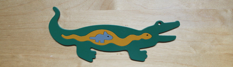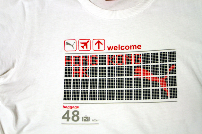 Porcelain plate from Shenzhen department store. It cost all of ¥25 (US$4).Crocodile chases snake chases rat ! .. from Muji store at Hong Kong airport.And .. the crocodile ate the snake that ate the rat.Commemorative proof coin set from Hong Kong's 1997 hand-over to China. This is the five-dollar coin - a rounded version of the Chinese character Shou, meaning longevity.These are the He He brothers, the two saints of Harmony, born of different fathers and after discord of seven generations concluded that co-operation was more profitable and conducive to happiness. (Almost a paralell with The Bible's Cain and Able?).And this is a unicorn of sorts, the fabled Qi Lin, a creature of good omen.The Puma T-shirt with an 'airport flight status' display panel. Heaven knows I see enough of those in airports - but I couldn't resist the shirt.And this piece of baumkuchen layer cake (also from the Muji store at Hong Kong airport) tastes like banana. When I bought it, I thought its description referred to its shape.