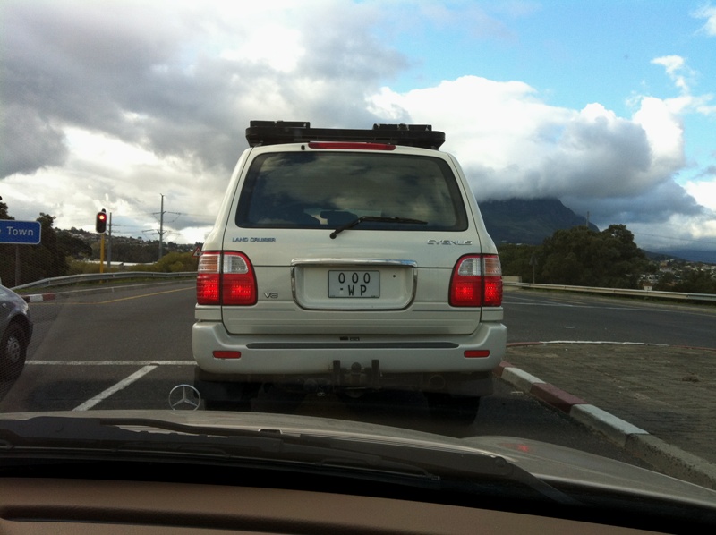 Here is an unusual license plate I spotted at a traffic stop, so let me decode it for you. I think it says ‘O-o-oh! Western Province’. The Oh as in O Canada, the national anthem, and Western Province is probably a reference to the local provincial rugby team with their venerable striped jerseys. The Western Province rugby team is the arch enemy of the Blue Bulls, the team from up north in the Pretoria area.