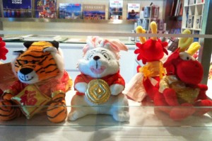 Hermès scarf on display at one of Narita airports luxury stores. (Hermes was an Olympian god in Greek religion and mythology, son of Zeus and the Pleiade Maia).This head of this ‘solar’ samurai in a toy store bobs back and forth. There is a little solar panel in the base.An ATM in Narita airport. Looks like 7-11 is in the banking business in Japan as well.That’s Mt Fuji on the wall of this Narita airport restaurant.Look for the wolf in this elaborate Red Riding Hood origami display, from a store that sells all kinds of origami kits.Oh no! McDonalds has infiltrated Japan as well. (That’s a Big Mac). ¥670 for the Big Mac meal is about US$9 : expensive compared to elsewhere in the world.We’re on the way to Hong Kong.The wasabi-flavored rice snacks are very very tasty.This is midnight on Tue night and I spotted this Hong Kong Airlines plane as I stepped off from ours. We are about to board a bus that will take us to the arrivals lounge.Waiting to check out of the hotel Wed morning, and checking out the offerings in the little souvenir shop. These Chinese zodiac characters are the Tiger (for 2010), the Rabbit (for 2011) and the Dragon (for 2012).SpongeBob Squarepants and I are on the way to Dameisha. (SpongeBob is not mine! belongs to the van driver).And here’s the obligatory border crossing picture as we entered the mainland, leaving the Hong Kong area.