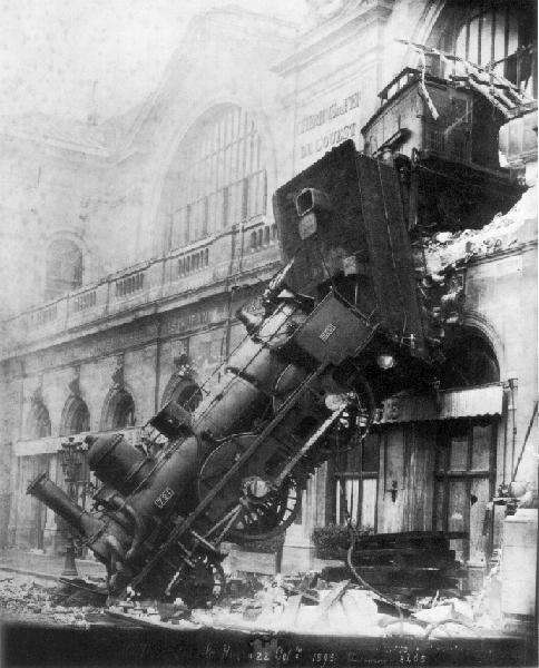 We watched Hugo* last night. In one of the boy’s nightmares, he dreams of the Oct 22, 1895 accident at the Gare Montparnasse station. The train was fitted with the famous Westinghouse air brake but was going at too high a speed for to stop in time.