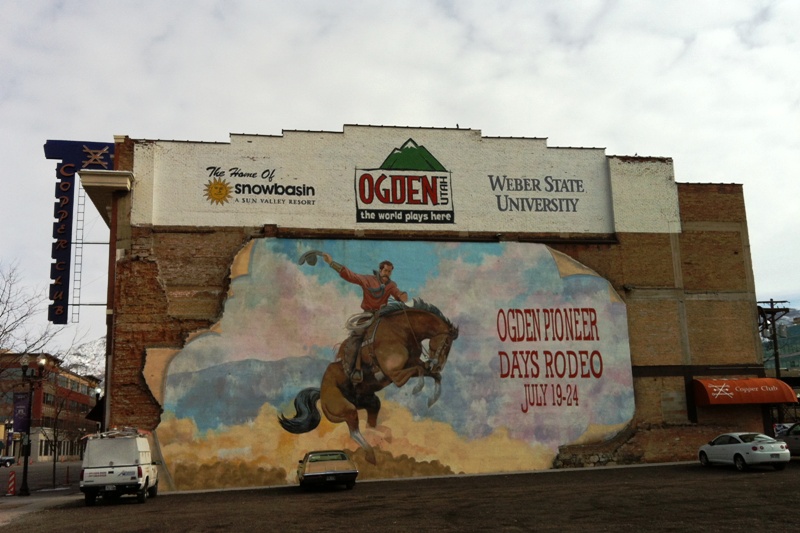 This is Ogden’s Old Post Office building, built in 1909 and made from sandstone.A rodeo cowboy on a mural kitty corner across from the Post Office. The Snowbasin ski resort was actually the site of the 2002 Winter Olympics in the Salt Lake City area.This is actually a picture from Monday, of a reservoir in the mountains close to Ogden. The town is called Eden.