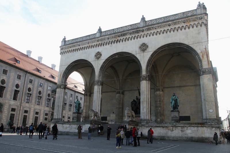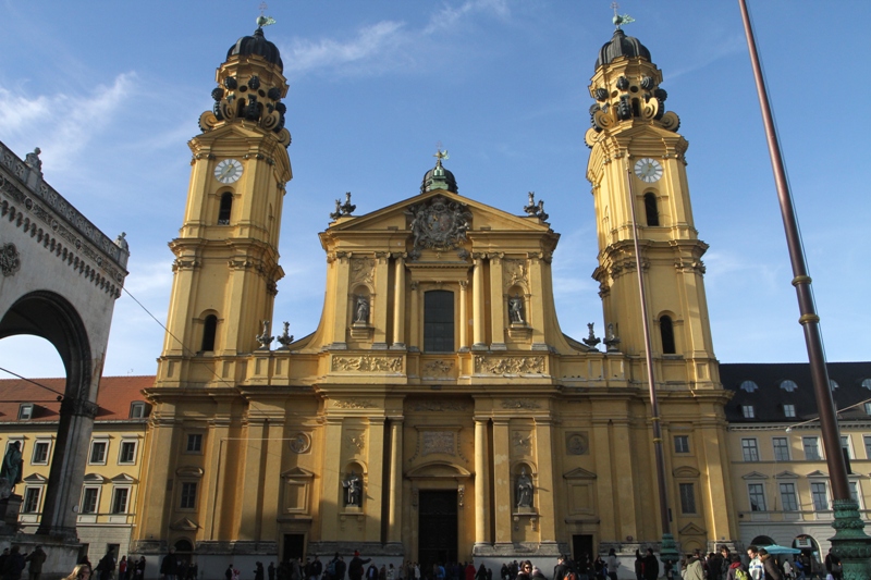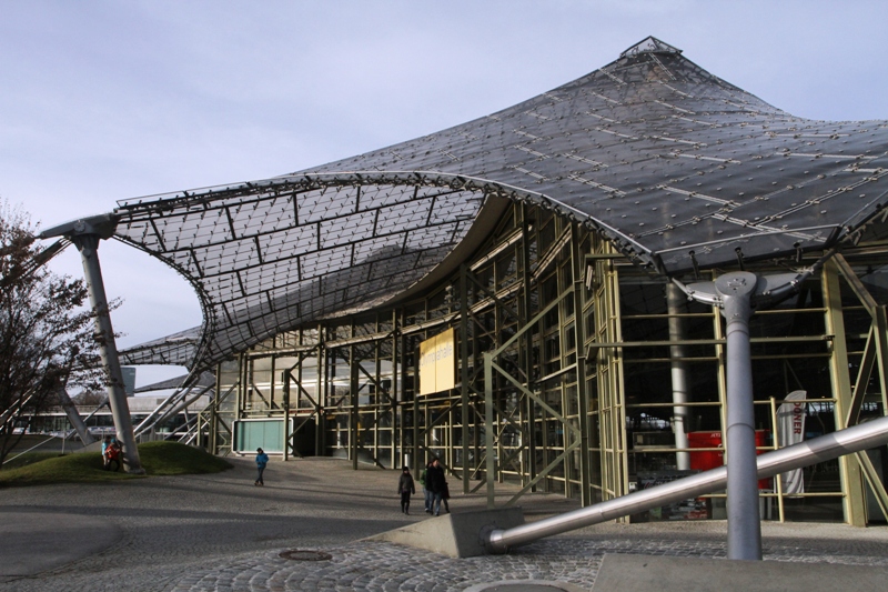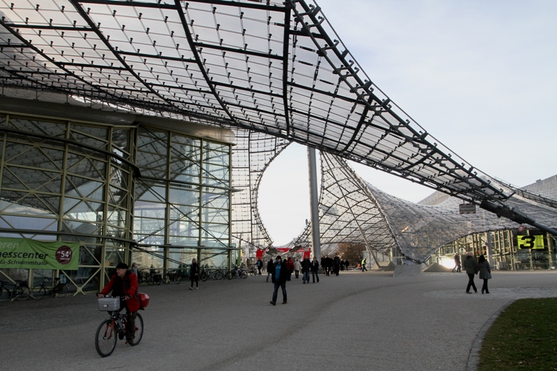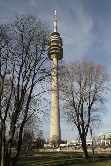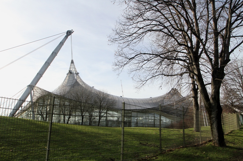I felt I had to stop at Odeonsplatz to take a day-time picture of Field Commander Hall, and here it is.The Theatine Church right next to it also looks a lot sharper in day time.This is the Olympic Tower as seen from across the man-made Olympic lake in front of the Olympic Stadium and the Tower.1972 Olympic Stadium had a unique construction and form for its time, one that has been used for many other structures since. The inside areas of the Stadium are not open, for the most part. Also, the fence stopped me from getting closer for this view.‘Dach Lawinen’ (roof avalanches), said one warning sign that I saw. But there is no snow on the roof at this time, so no problem there.
