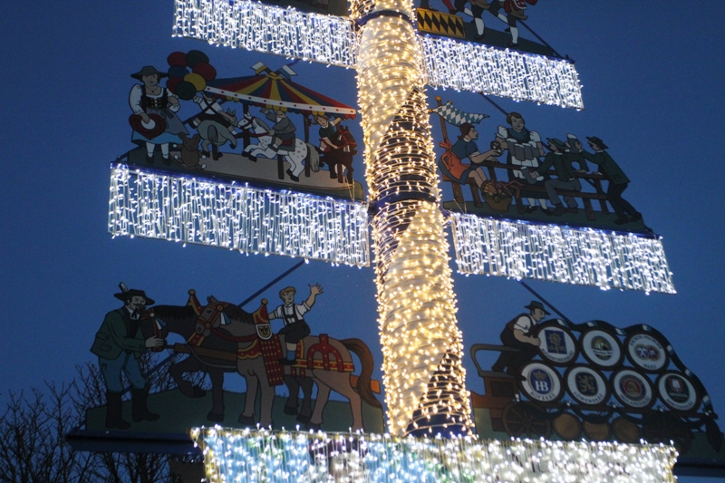 This is 11 am on Sunday morning, and I am watching the Glockenspiel in the main tower of the City Hall building. There is a upper and lower carousel with marionettes that go around and around .. and at the end two knights with lances ‘charge’ each other and one is mortally wounded !The main gate is a work of art (well, the whole building is a work of art).Cool restaurant facade off Marienplatz .. I like the ‘tulip’ style light fixtures that blend into the building’s face.Montgelas Memorial (artist Katrin Sander, 2005) at Promenadeplatz square in the old city. Maximilian Josef Garnerin/ Count von Montgelas (1759–1838) was a Bavarian statesman.The Bayarischer Hof hotel off the Promenadeplatz square.I don’t know the name of this charming old department store off Marienplatz .. will find out and add its name in here.Always great to find a mirror for a self portrait ! I just hopped off the train behind me, at the Marienplatz U-bahn station.I’m not sure how this sign works ! It’s possible that some signals are for cars and others for trams or buses. Most crossings have buttons for pedestrians. I ALWAYS wait for the green ‘robot’ light and never jaywalk in a strange city.The ‘Kings Court’ hotel near Karlsplatz station. It was just refreshing to see a somewhat modern design after all the old buildings.Orleans Street runs by Ostbahnhof where my Marriott hotel is. Even here in the outskirts of the city there are plenty of taverns and bars for quaffing a great German beer.U-bahn entrance to Marienplatz stationThe Christmas markets are quiet now, but this friendly fella was outside a restaurant that still hosted an outside area with beer drinkers, making use of all of 2012’s merry-making !These beautiful Christmas market lights were still up, around Karlsplatz .. lucky for me.Christmas store display nearbyFeldherrhalle (Commander’s Hall) at Odeonsplatz. It gets dark at 4.30pm already! I had to use the ISO 1600 setting on my camera to boost the light for the picture dramatically. Theatine Church at OdeonplatzHere is the Neues Rathaus (New City Hall) at night. The building on the right is a department store. There is also an Apple store close by (sacrilege!).