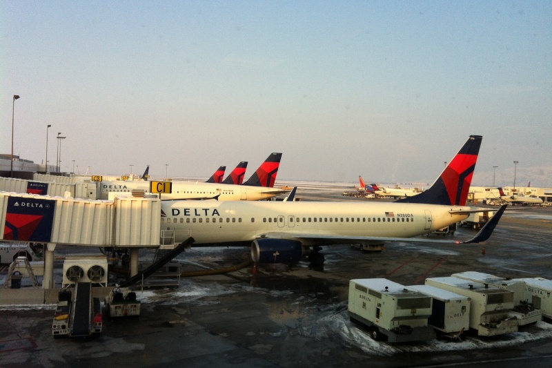 The blue and red tails of the Delta jets are from Concourse C at Salt Lake City airport. One of them will get me out of Dodge*. The project’s workshops are done for the week. We did a tour through the plant where we are working today. It was bitterly cold as we walked outside, so our little group of 5 was all too thankful to duck inside each of the buildings that was part of the tour so that our noses and ears could defrost. One building has a furnace in. ‘Do we have to leave?’ we said when it was time to go. If you’re not in an office, that is where you should work in winter time!
