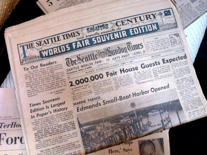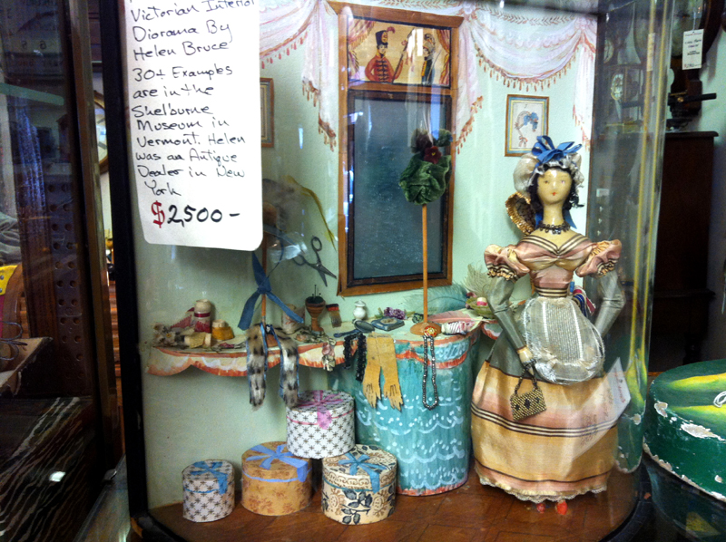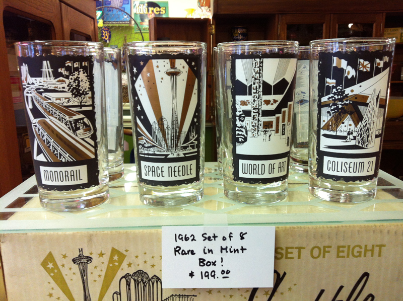 The restored Oxford Saloon front in the main street of Snohomish houses a restaurant but is undergoing renovations inside.The town of Snohomish is about 30 miles north of Seattle.One of a dozen or so antique stores in the main street. Antique stores typically have spaces inside for exhibitors (vendors) to set up their own displays.The World’s Fair Edition of the Seattle Times (April 8, 1962) had a whopping 380 pages !A beautiful mechanical street clock on the main street.I love the colors in this Texaco gas sign.For the serious collector only : a Victorian age diorama.Will this winged cupid lamp post fit somewhere in my house? Should I spend $1,195 on it? (No).A set of eight 1962 World’s Fair shot glasses goes for $199.