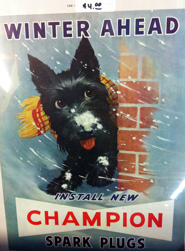 You don’t have to spend big bucks to come away with something cute such as this vintage poster for Champion spark plugs.
