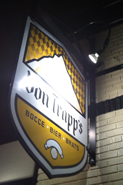 A group of nine of us went out to Von Trapp’s tonight : a new German-style bier and bratwurst hall right here in Seattle’s Capitol Hill district on 12th Ave. The inside of the place is cavernous and comes complete will some bocce ball* courts as well. *closely related to bowls/ lawn bowling