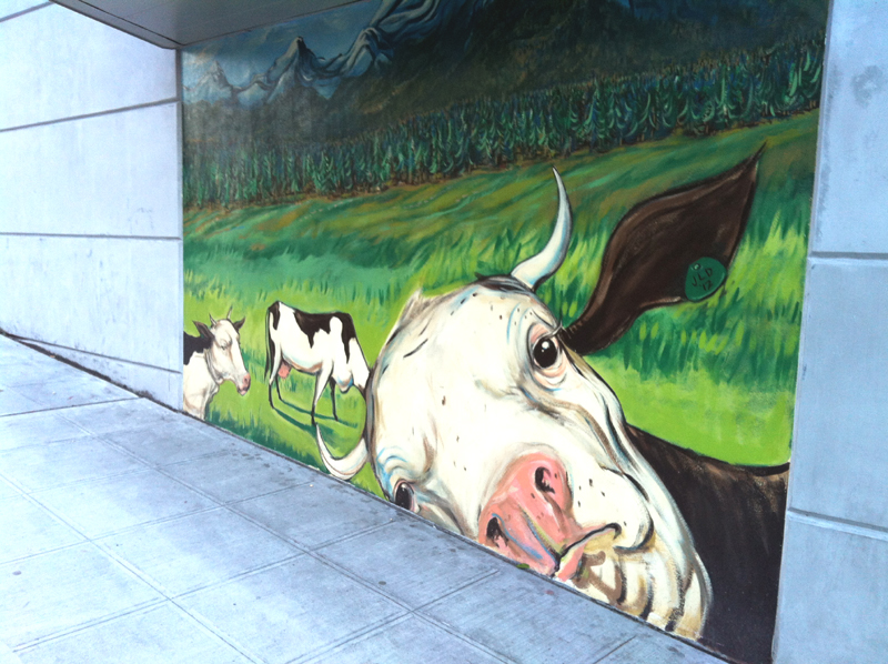 This street art cow is new (I think). I found it by the corner of Madison and 18th Ave here on Capitol Hill when I took a walk just before sunset on Thursday. The rain we had on and off all week had stopped, but it was still a brisk 45 °F (8°C) outside.