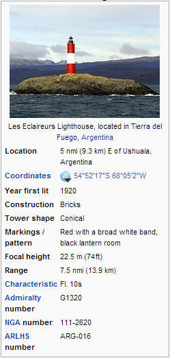From Ushuaia, there is a tourist boat to The ‘Lighthouse at the End of the World’ some 5 nautical miles east of Ushaia. The lighthouse has been there since 1920.