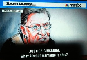 Tuesday and Wednesday this week was a Supreme Court Superbowl of sorts with high-profile lawyers going before the highest court in the United States to makes their cases for and against ‘Prop 8’ (Tuesday) and DOMA (Wednesday). Prop 8 is short-hand for California’s Proposition 8 from the 2008 state elections there, that was approved and eliminated the rights of same-sex couples to marry there, leaving some 4,000 marriages already performed in legal limbo. However, Prop 8 was ruled unconstitutional by a US District court judge. The Supreme Court agreed to hear it. DOMA stands for the 1996 US Congress’s Defense of Marriage Act, stipulating that the federal government is not allowed by law, to recognize same-sex marriages from the States. There are about 1,100 benefits and privileges that come with marriage, so this is not a trivial matter if you are a gay person with a partner you want to marry or are married to already, under your State laws. (Some states allow ‘civil unions’ or domestic partnerships. Most others have explicitly banned it. Go west young man! or young woman, as that classic YMCA song says). So .. how to sort all of this out? ‘When did same-sex marriages become ‘unconstitutional’? asked conservative Justice Antonin Scalia, expressing his sceptisicm. But here is Justice Ruth Bader Ginsberg at a later point .. my answer would have been, Mr. Clement, (the lawyer arguing for upholding the Defense of Marriage Act), if we are totally for the States’ decision that there is a marriage between two people, for the federal government then to come in to say no joint return, no marital deduction, no Social Security benefits; your spouse is very sick but you can’t get leave; people—if that set of attributes, one might well ask, What kind of marriage is this?” Then Justice Ginsburg answered her own question. Under DOMA there were “two kinds of marriage; the full marriage, and then this sort of skim-milk marriage.” The Supreme Court should issue their ruling on both cases by June. Most legal pundits that hazard a guess at each of the outcomes say that first, for Prop 8, it sounds as if they will simply say that they are not going to issue a ruling. (It’s complicated and there are issues of ‘standing’ .. since the California Attorney General and Governor both declined to defend Prop 8, could the proponents of Prop 8 defend it in front of the Supreme court?). So if the Supreme Court does not issue a ruling, then the overturn of Prop 8 stands and same-sex marriages are good to be recognized (again) in California. As for DOMA, it appears that a majority of the nine Supreme Court judges will rule it unconstitutional .. or at least rule that the Federal government has to recognize all marriages sanctioned by the States. That would still leave same-sex couples in those States that currently ban same-sex marriage worse off, but hopefully those bans will also be overturned in time. The wheels of justice turn slowly.