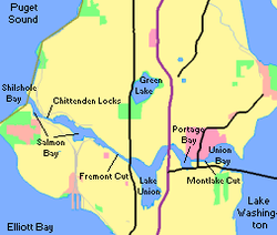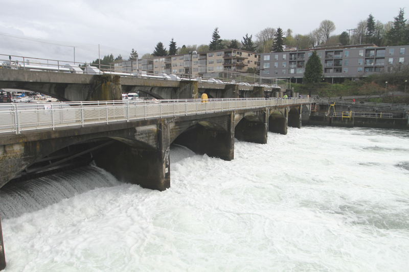 The Lake Washington Ship Canal connects Puget Sound to Lake Union and Lake Washington. If you’re on your boat, you need to go through the locks, though — and if you have a tall sailing boat, there are several bridges that you will have to buzz the bridge master for to open for you as well !Why are the Locks needed? To keep the salt water of Puget Sound out, and the fresh water of Lake Union in .. and to serve as a ‘boat elevator’.