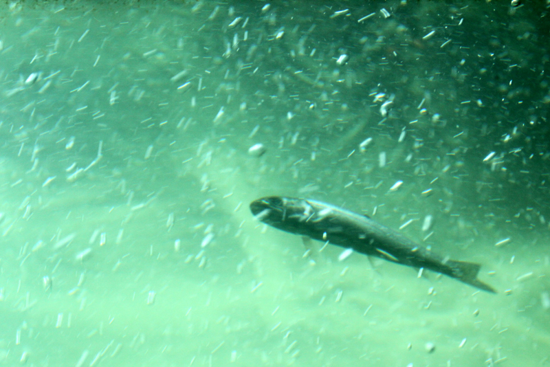 My brother and I and friends went out to the Museum of History and Industry in South Lake Union neighborhood (yes, I was there a few weeks ago as well), grabbed a bite to eat nearby, and went on to check out the Ballard Locks (official name : Hiram M. Chittenden Locks). The locks are part of the Lake Washington Ship Canal, a large project that was started in 1911 and officially completed only in 1934. The system of locks separate the fresh water body of Lake Union that is on average 20 ft higher than the salt water of Puget Sound (depending on the tides). The locks also have a ‘fish ladder’ .. a set of boxes and weirs that allow salmon to migrate into Lake Union and Lake Washington to spawn. I see fish like salmon that do this salt water-fresh water migration, are called diadromous fish.