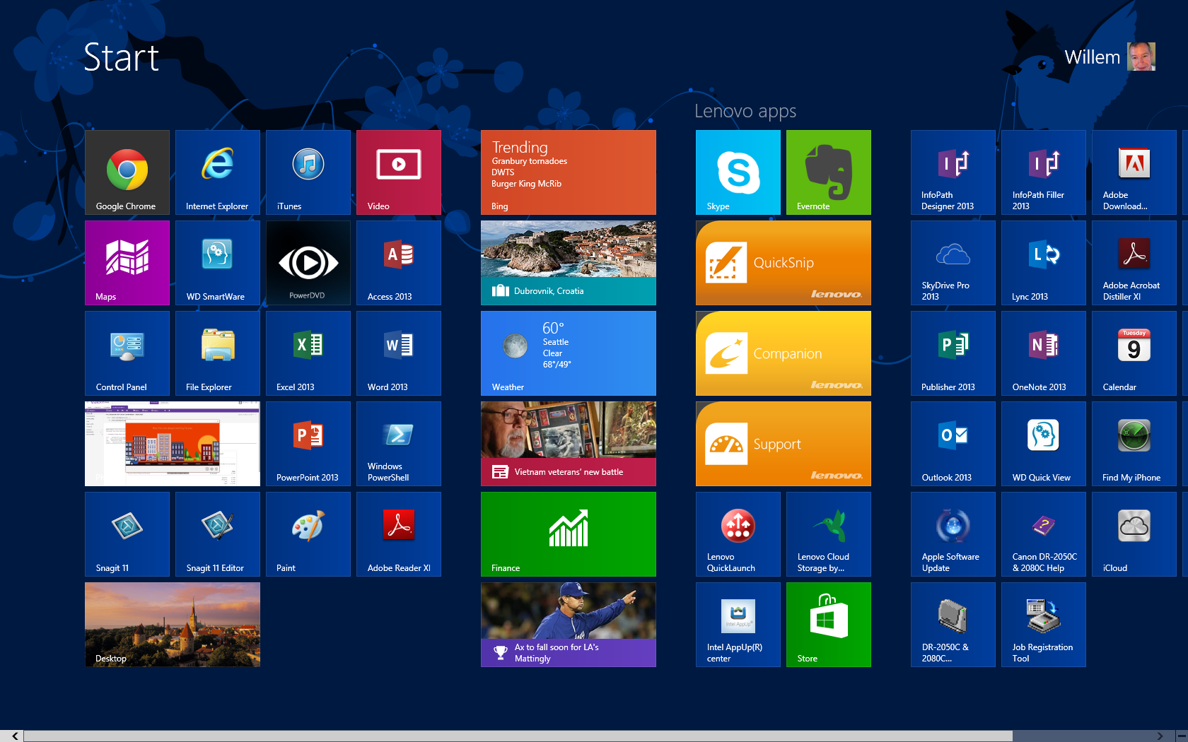 So .. it’s not hard to see why Microsoft is encountering resistance from their installed Windows 7 user base that have been forced into the gaudy Start screen tiles of Windows 8 that screams color and wiggly little updates at them. What a shock to one’s senses if one had a desktop with a dreamy wallpaper background ! It’s in your face, and it’s ‘noisy’. And of course Microsoft prods its users to sign up for a Microsoft account for many of the apps – such as Mail, Skydrive, the Store. You can even sign in onto your machine with a Microsoft account (not local a password) which will then save your settings in the cloud and make your desktop, Surface tablet and Microsoft phone all look the same (does anybody have all of those?). No thanks, I think. If that account password gets lost in the clouds, or hacked, then I am toast.
