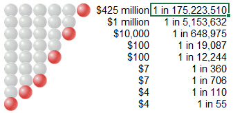 The odds of winning the Grand Prize is truly astronomical. Since the sun is about 92 million miles from earth, the odds of winning is similar to one mile against the distance from Earth to the sun and back.