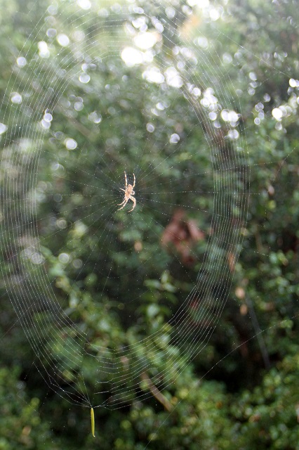 In summer, I have to watch for spider webs as I walk from my back door to the garage. This one was in the main walkway between the garage and the shrubs six feet away.