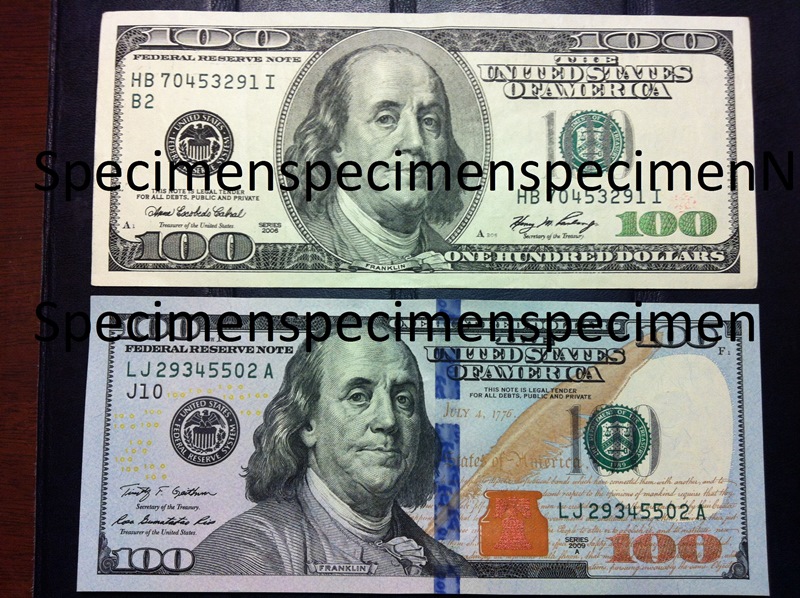 I checked again today at lunch time with the bank if they had new $100 bills, and they did. The teller emerged from the vault with a crisp new stack of one hundred $100 bills (so : $10,000; enough to choke a horse?) and peeled off two for me. The new bills have a blue appearance and is not radically different from the old – but it does have some nice touches of color with the blue and the orange.