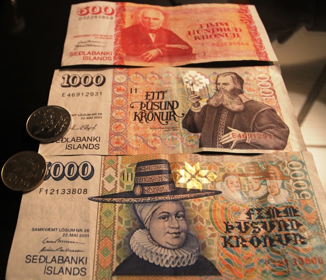 The local currency is Icelandic kronas : 116 of them to the US dollar right now.