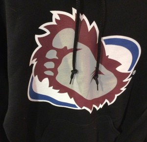 A sweater for sale in the fan shop. That’s the foot of a Sasquatch (abominable snowman),the alternative logo of the Colorado Avalanche ice hockey team.The Pepsi Center is a multi-purpose stadium : used for ice hockey, basketball, and even musical concerts. Justin Timberlake is scheduled for a show later in January.This is during a break between one of the four periods. Those are zambonis on the ice, the ice resurfacing machines, The machine is named after its inventor, Frank Zamboni. Also check out the in-stadium only blimps (‘Dream Big’ advertises the lottery!) that are radio-controlled with little electric propellers.Here’s some action on the ice. The Colorado Avalanche bested the Ottawa Senators 4-3 in overtime. The Avalanche team captain is Gabriel Landeskog, a Swedish national.