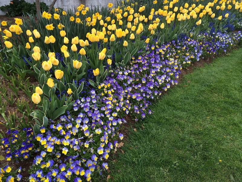 These spring flowers are outside the Conservatory in Volunteer Park here in Seattle.